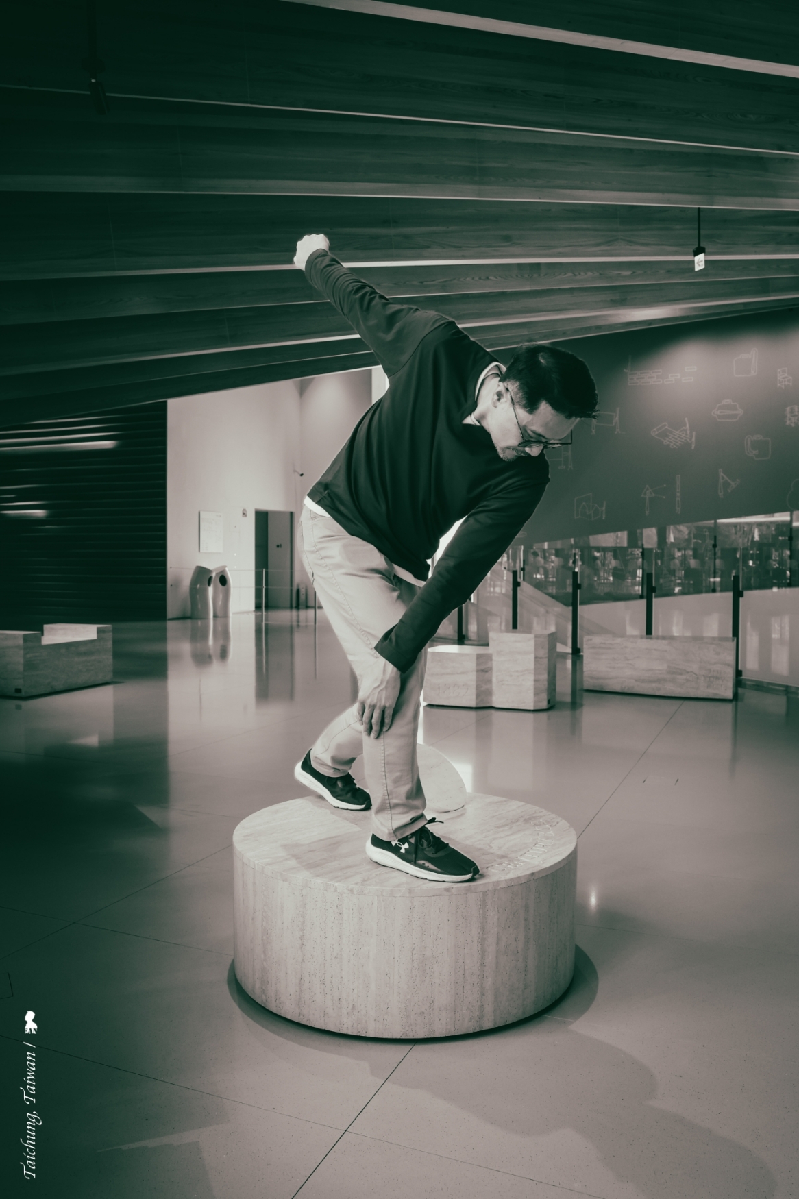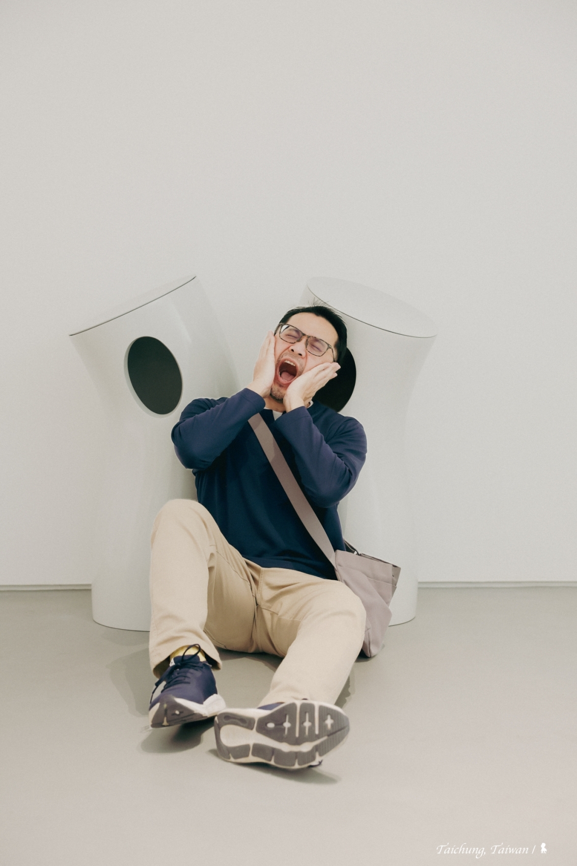 走進地面層,最讓人意外的是這裡似乎沒有展品?取而代之的是一系列不同形狀的基座,低調的標示著作品名稱與年份。原來,這並非已經撤展,而是刻意為之的有趣設計!勤美術館沒有固定館藏,於是邀請參觀者親自「完成」這場展覽。你可以在基座上擺出姿勢,模仿《擲鐵餅者》或《沉思者》甚至是高舉火炬的自由女神,在這個場域中,每位參觀者都是藝術作品的一部分。