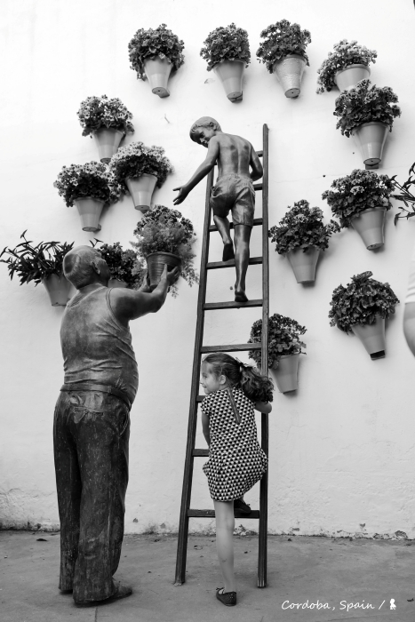 我在五月造訪,每年城裡這時都會舉辦「庭院節」(La Fiesta de los Patios),沒辜負充沛的地中海陽光,到處都是盛開的各色鮮花,一直以來用花卉妝點自家庭院是他們的日常。1921年由政府發起的庭院節正好百周年,我按圖索驥穿梭街巷依序造訪幾個蟬聯多年得獎的知名庭院,噴泉的沁涼、整面白牆的百花芬芳,各花入各眼,但這份閒情所帶來的愉悅是不分人種。一年一度為期約兩週的庭院節,於 2012 年申遺成功,成為西班牙的第 11 個世界非物質文化遺產。