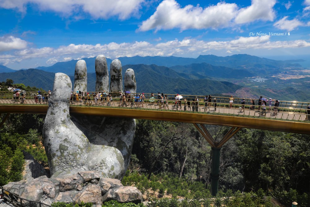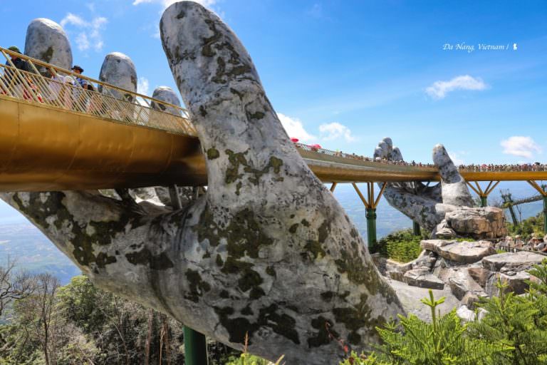 而當年法國人開發的避暑山莊,正是今日峴港的明星景點:巴拿山。一條金色綢緞在海拔 1414 公尺高的山間飄逸,那是一座長 150 公尺、寬12.8 公尺的金橋,被一雙超大佛手撐托著,2018 年落成後隨即成了全球最受矚目的景點之一。而要從山腳來到金橋的交通方式也很酷,全長 5.8 公里的纜車是全越南最長、高低落差最大,沿途風景壯闊優美。海拔 1487 公尺的巴拿山,在炎炎夏日裡享有平地所沒有的涼爽,巴拿山園區集結了高級飯店、九座花園、多家餐廳、蠟像館還有主題樂園,是值得住上一宿的避暑勝地。若在 2019.6/2-9/30 前來,特別推薦至 Noel Plaza 觀賞一場名為「陽光舞會」的戶外華麗大秀,數十位專業西方表演人員組成的團隊,結合體操、特技與舞蹈,很具世界水準。
