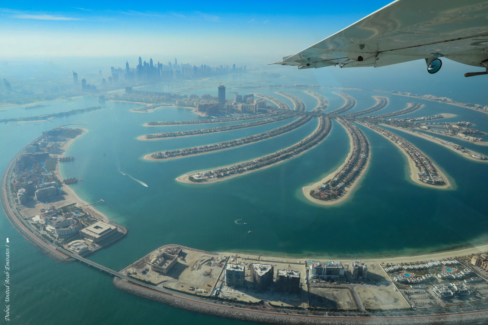 從杜拜河起飛,整趟飛行歷時約廿分鐘,這場飛行高度 1500 英尺的市區觀光毫無冷場,帆船飯店、棕梠島、杜拜相框與哈里發塔,世界級景點一個個在窗外出現,宛如大手筆的焰火秀,在空中炸開的每一枚花樣都不同,難怪有人說,只要杜拜可以超越杜拜!