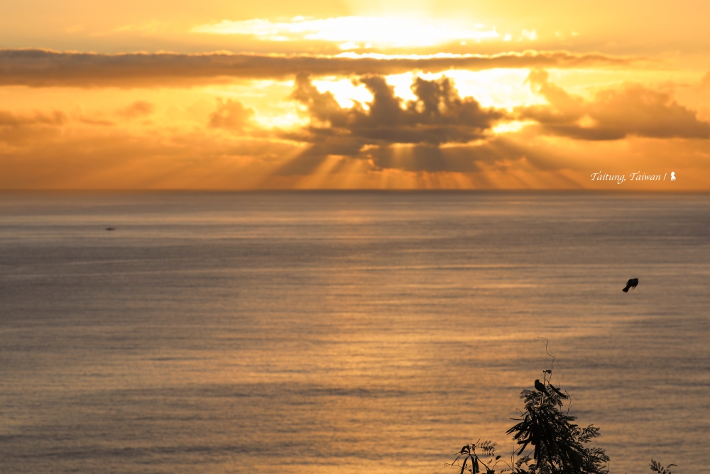 ⇑ 兩隻陪我等待海上日出的鳥(右下)