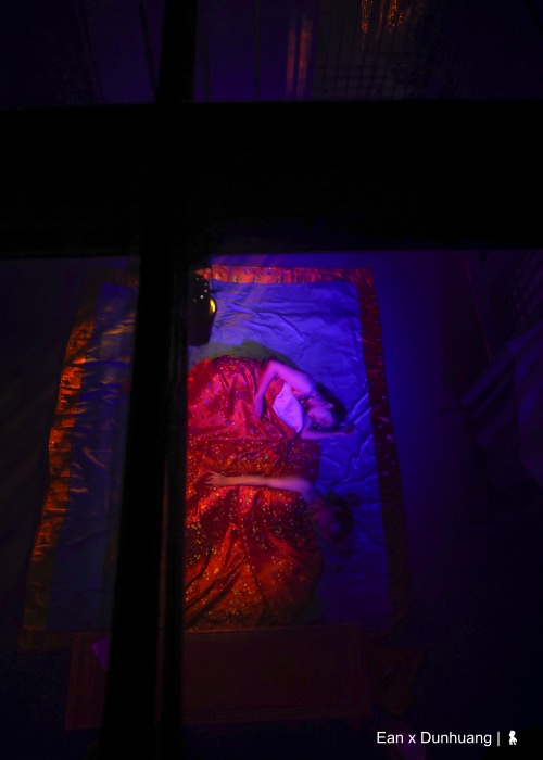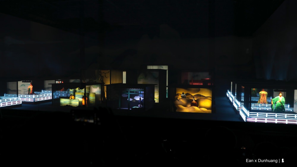 「這是你從來沒有過的看劇體驗」晚餐後前往湖藍劇場的巴士上,我們的專業導遊莎莎說她每看一次哭一次,透過她的描述,「先要站著看」、「需走動」、「演員離你很近」等幾個關鍵字,我大概可以猜到在大陸開表演形式先河的「又見敦煌」可能是怎麼一回事。果不其然,在觀劇過程中,蠻多表演手法與呈現方式,讓我想到了這兩年讓我印象最深刻的三齣劇,那有著台灣雲門《流浪者之歌》的禪意境、《極限震撼+ FUERZA BRUTA》的多面舞台、互動式表演與聲光效果,還有紐約《Sleep No More》與演員零距離的高浸入感觀劇體驗,整體來說的確頗為創新與成功,若有美中不足,可能就是在觀眾不自覺被分成 16 組、進入不同洞窟場景的表演場域時,因怕混亂而多了些規範與宣導而讓觀眾容易出戲,不像《Sleep No More》來得自然與擁有那麼高的沈浸感。