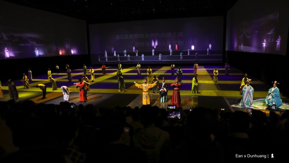 在拜見莫高窟的前一晚,我很慶幸先觀賞了一部非常受歡迎的室內情景體驗劇「又見敦煌」,那不僅讓我隔天造訪千年莫高窟時能帶著更多認識,更重要是懷抱著更多疼惜與珍視,當面對洞窟裡,那些還在與曾經存在的人類瑰寶時。這齣劇自 2016 年 9 月首演至今已演出逾 2100 場、接待超過 138 萬人次,在剛過的旅遊旺季 – 今年 8 月甚至還創下單日演出 12 場的紀錄,單場 90 分鐘的劇目,從早上 8 點演到凌晨 1 點,還有觀眾抱憾買不到票,是目前敦煌最具代表性的必看表演之一。