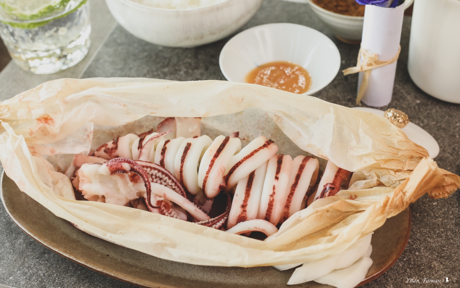 ⇑ 採用紙包魚的料理靈感,使用類似手法把東北角透抽的鮮甜鎖住