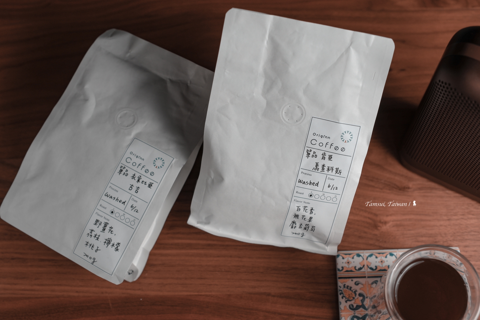 ⇑ 單品咖啡豆,上頭都會標記烘豆時間,是否新鮮,手沖悶蒸便知分曉