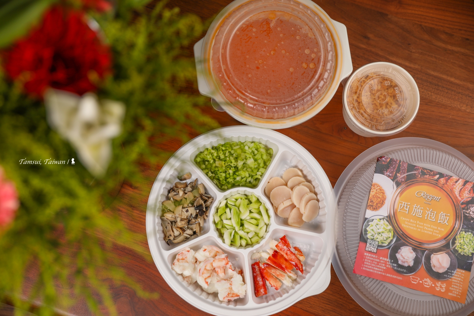 「食」力堅強的台北晶華酒店推出一系列的「五星美饌外帶外送」,想吃哪種料理都能大大被滿足!今年四月我在「晶華軒」餐廳嘗了一道讓我印象深刻的料理:西施泡飯,哪能想到,有一天竟也能在家裡熱騰騰吃到。餐廳非常用心,把能先處理的都妥善備好,即便在家吃,真材實料完全不打折,北海道鱈場蟹肉、干貝、澳洲帝王蝦球,一樣不少!但其實最費工的,是那一鍋鮮艷橘紅的高湯,那可是鄔海明主廚使用龍蝦、沙公以及白蝦進行 3 至 4 小時熬煮才完成,非常鮮甜濃郁!