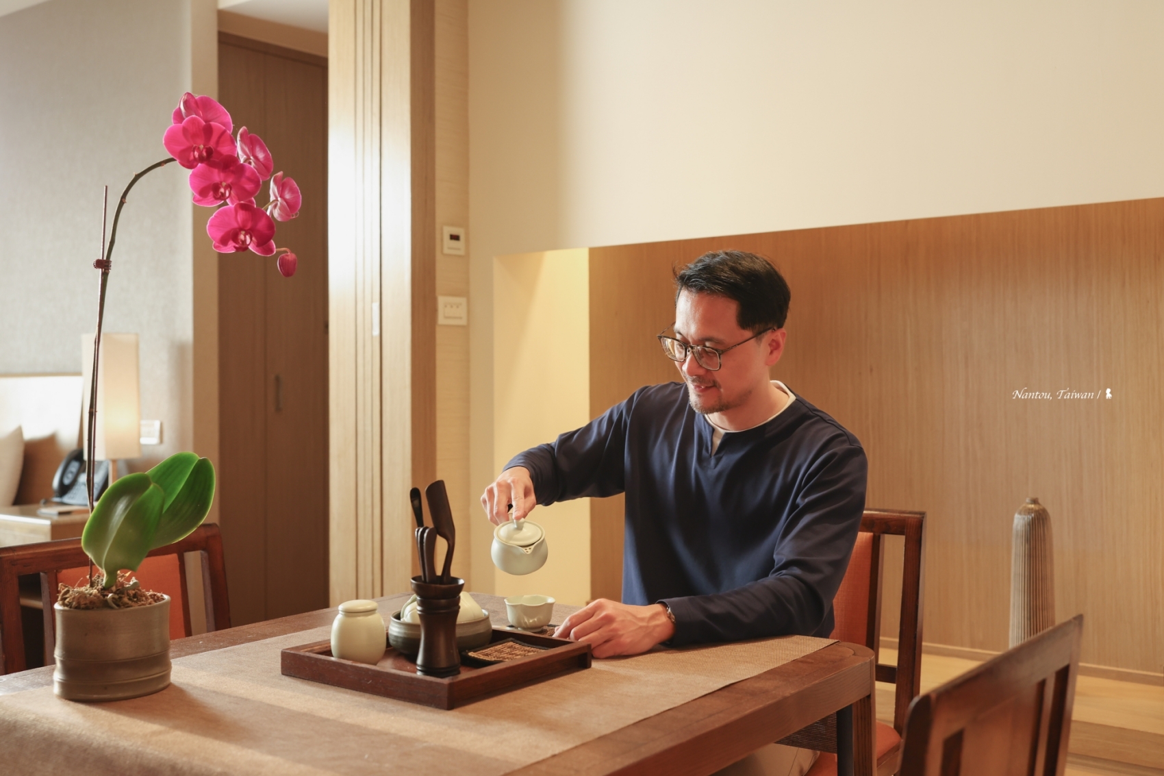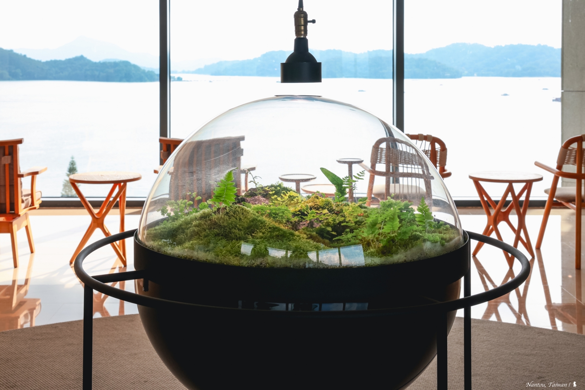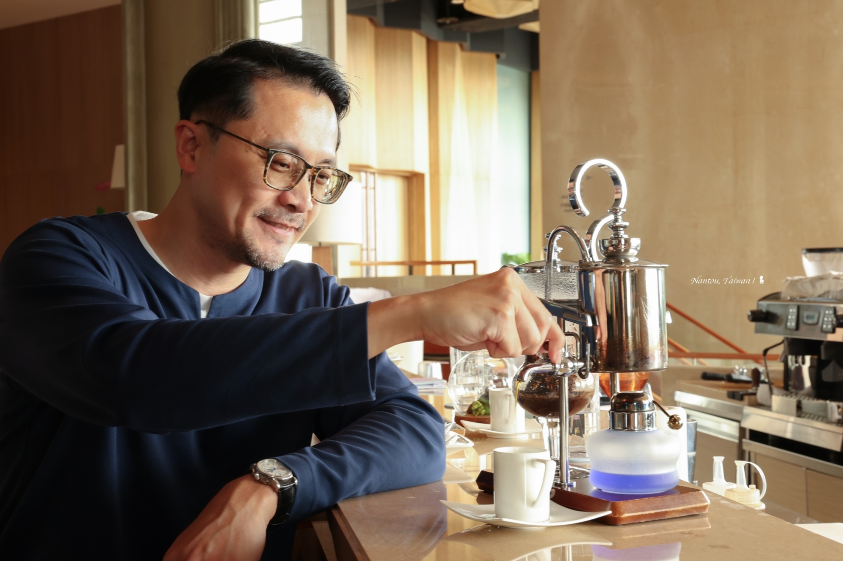若喜歡喝咖啡,不妨到大廳酒吧坐坐,招牌是使用比利時皇家咖啡壺來沖煮在魚池水社大山種植的咖啡豆,取名為「大山水晶咖啡」。這種植在魚池鄉的咖啡豆來頭可不小,曾在日本世界虹吸壺咖啡大賽中獲得亞軍,更吸引了世界咖啡杯測比賽裁判長 Sherri Johns 為此風味造訪台灣。