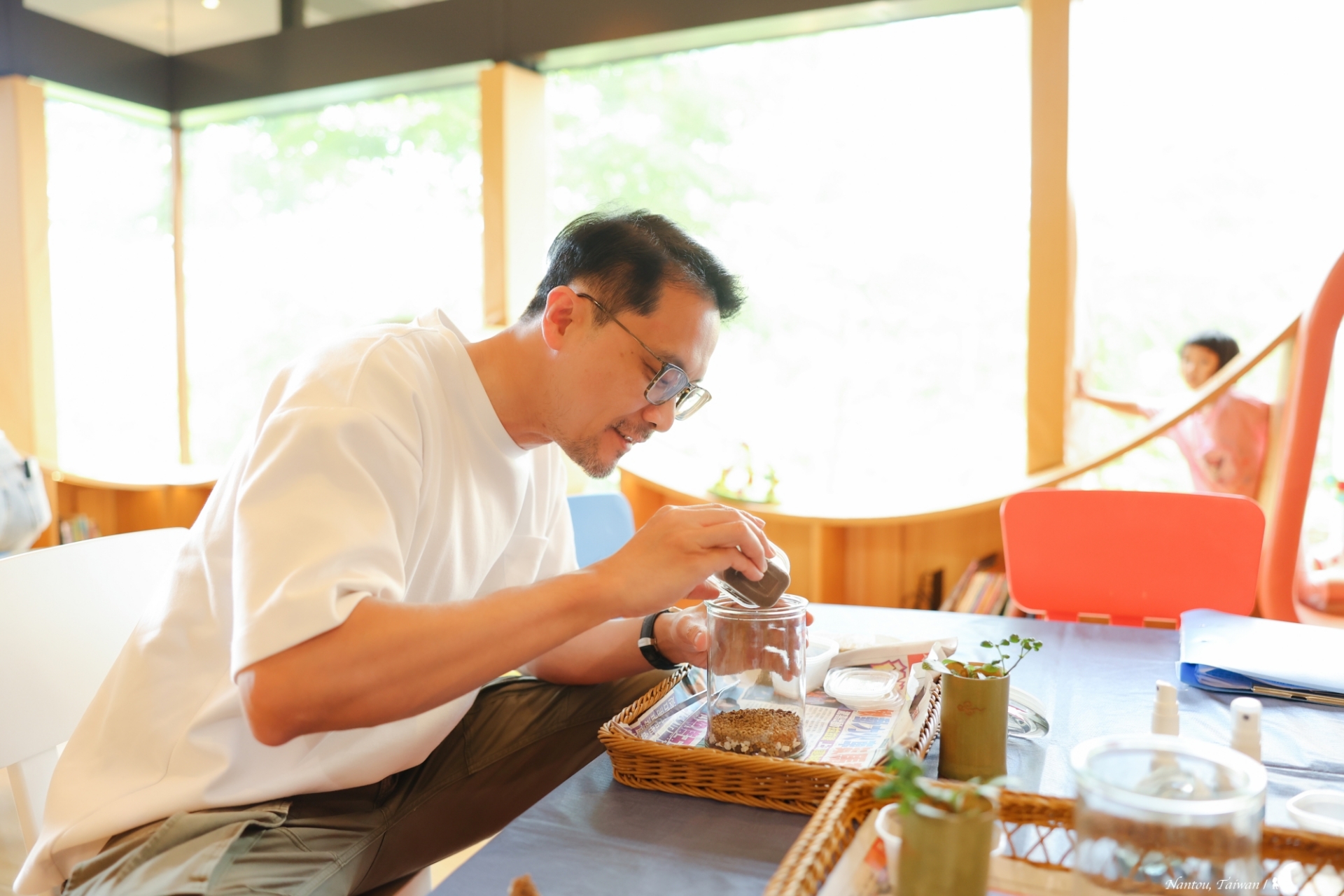 除用甜點呼應梯廳生態缸,重視永續的雲品為了希望將這份理念帶進客人日常,推出了「微景觀生態瓶課程」,要帶領房客製作專屬自己的「迷你版生態缸」。不用擔心自己手不巧,跟著小老師手把手的教導,依序在玻璃罐裡層疊放入排水材質及土壤,接著輕拿鑷子小心種入苔蘚與各式植株,最後,放入被視為邵族守護神的貓頭鷹,一座迷你自循環生態系的瓶中森就大功告成!這項是付費體驗但收費實惠,每房享 1 位優惠 NT$ 200,第 2 位起加購價 NT$ 350。