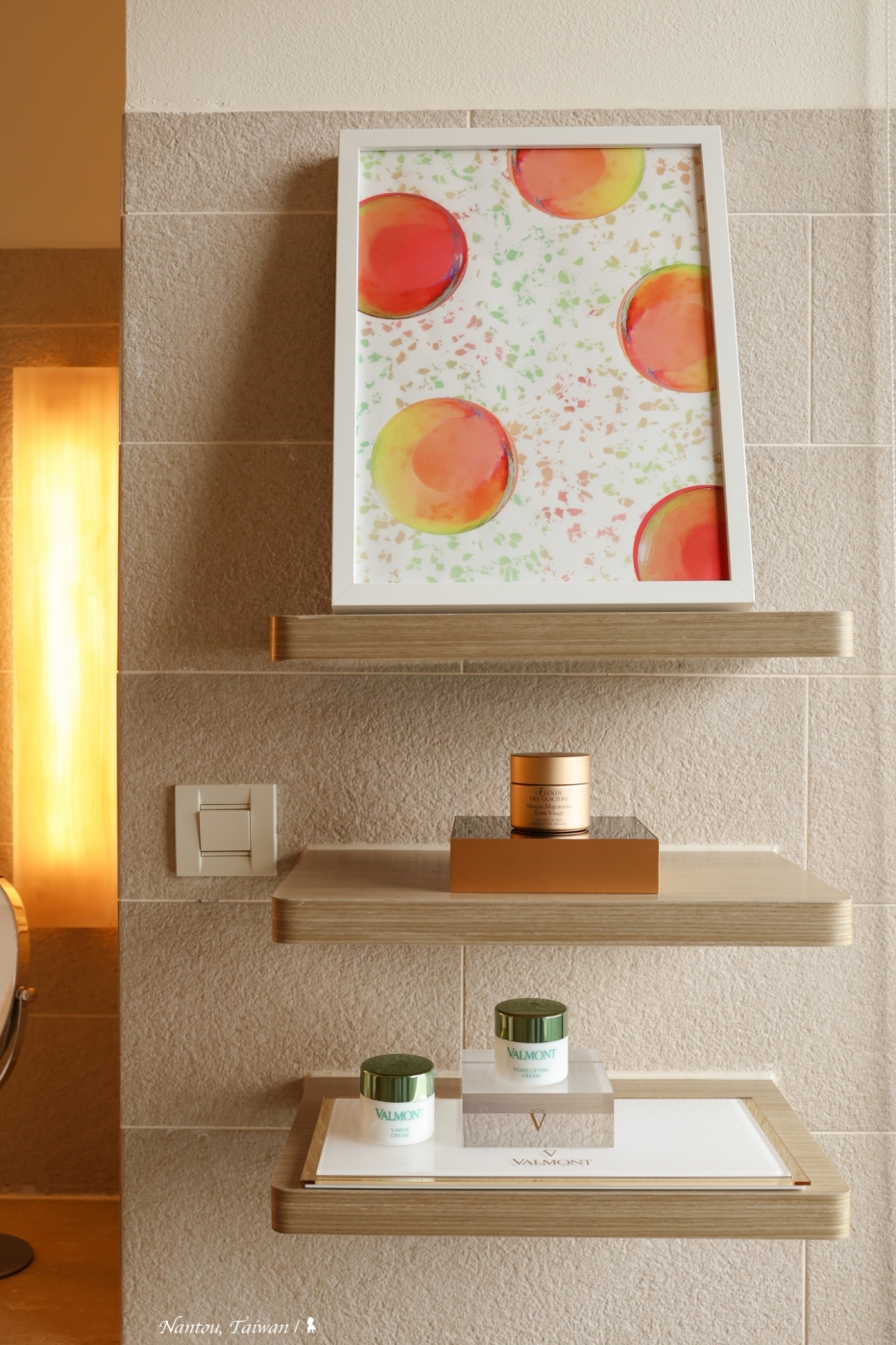 若想來場寵愛自己的療癒假期,入住雲品不要錯過位於 5F 的「VALMONT SPA」,這是來自瑞士、擁有百年歷史的歐洲皇室指定頂級護膚品牌,去年 7 月才進駐雲品,並成為台灣第一家的 VALMONT SPA 直營店。打造了 5 間景觀芳療室,我使用的這間是面向日月潭,可想像彷彿置身在瑞士日內瓦湖畔,一邊享受頂級的沙龍體驗。