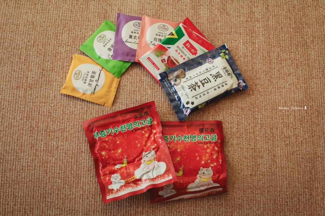 ⇑ 眼罩與各種無咖啡因的茶,相當齊備