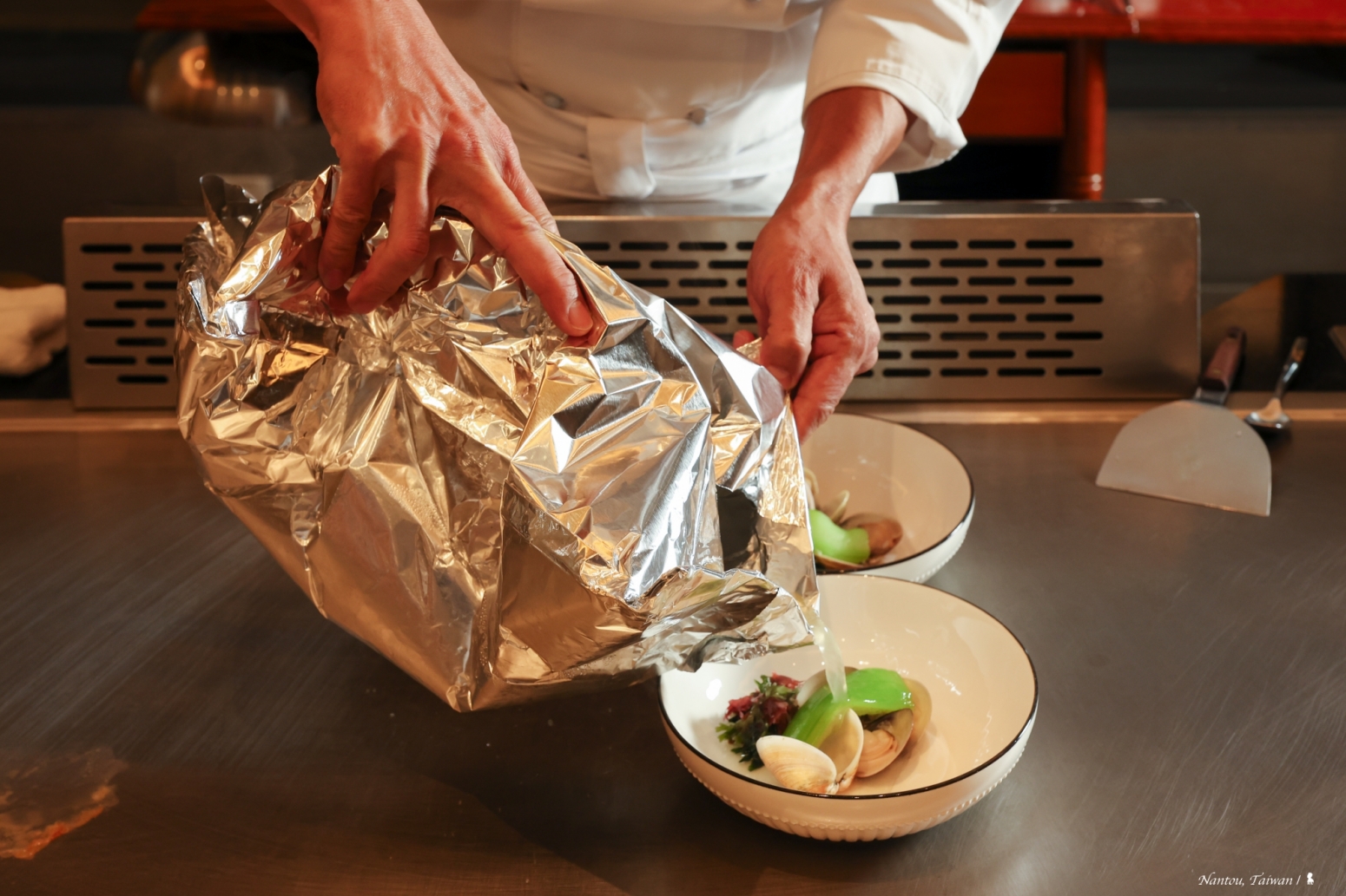 鐵板燒的魅力在於現場互動,李主廚樂於分享烹調過程與食材故事,令人感受到料理背後的熱情與專業,不論是烹調手法讓我大開眼界的「板蒸蛤蜊湯」,還是壓軸甜點「芋香捲餅」的甜蜜收尾,在在都蘊藏了巧思與創意,讓人回味再三。