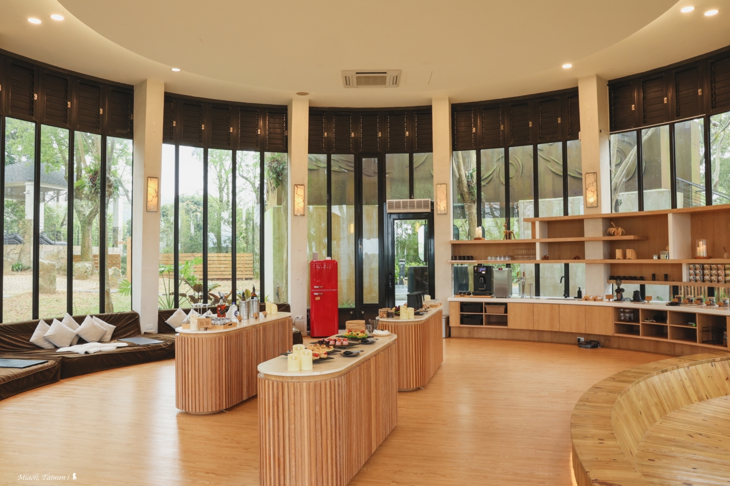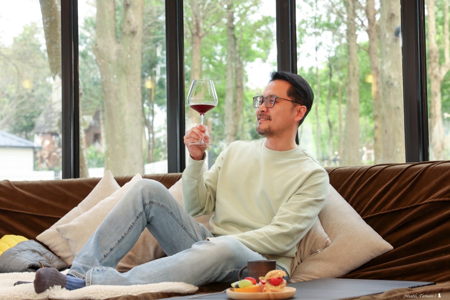 園區所標榜的精神文化「Hygge」,我也是第一回聽到,園方告訴我這個丹麥語的意思,就是居住在北歐的人們喜愛和親友相聚共享美食、美酒及糕點,然後一定會有舒適的毛毯及溫暖的燭光相伴,為了讓來訪的客人都能好好體會 Hygge 精神,所以他們準備了一棟 24 小時不打烊的圓形館。這個空間概念跟虹夕諾雅全天候開放的 lounge 很像,但這裡提供的餐飲品項又更加豐富,除了下午 3-5 點提供季節性下午茶(例如春天草莓季就是以莓果為主題),其餘時間來,也都能自己輕鬆在這吃吃喝喝。以咖啡來說,除有自動咖啡機,還講究的提供三款精選咖啡豆,提供客人從磨豆到手沖,酒水的話,則提供了四款酒,包括在地紅、白酒,還有燒酎以及威士忌,可說誠意十足,對了、晚上這裡提供的宵夜更是精彩,但前提是得要吃得下。