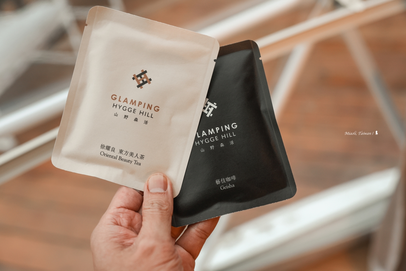 當我一走進帳篷,看到提供給客人的都是精品級設備,馬上就能直接感受經營者的用心與誠意。Dyson 吹風機、Fellow 電子控溫煮水壺、Marshall 藍芽喇叭,浴室備品也是 Aesop 全系列,就連咖啡茶也都非常講究,那是藝伎咖啡掛耳包及徐耀良東方美人茶茶包,兩者的品質都相當好。還有,當清晨起床、山間微寒,帳篷裡還貼心備有 Tommy Hilfiger 的厚外套,舒適又有型,在台灣除了虹夕諾雅 谷關,這是少見也提供館內服的旅宿,讓我印象深刻。