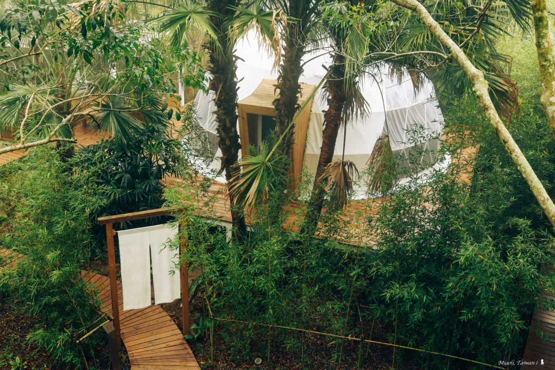 實際來到園區,我蠻訝異超過萬坪之地竟只規劃放置 8 頂帳篷,我想要多塞幾帳絕對沒問題,這可直接增加收益,但他們沒有選擇這麼做,而是讓每組客人能獨享超過 50 坪的室內戶外獨立空間,相當大器。入住期間有機會與董事長稍作交流,發現董事長跑遍世界各地,住過很多頂級旅宿,無怪乎山野森活不管是規格或呈現的質感都沒話說。