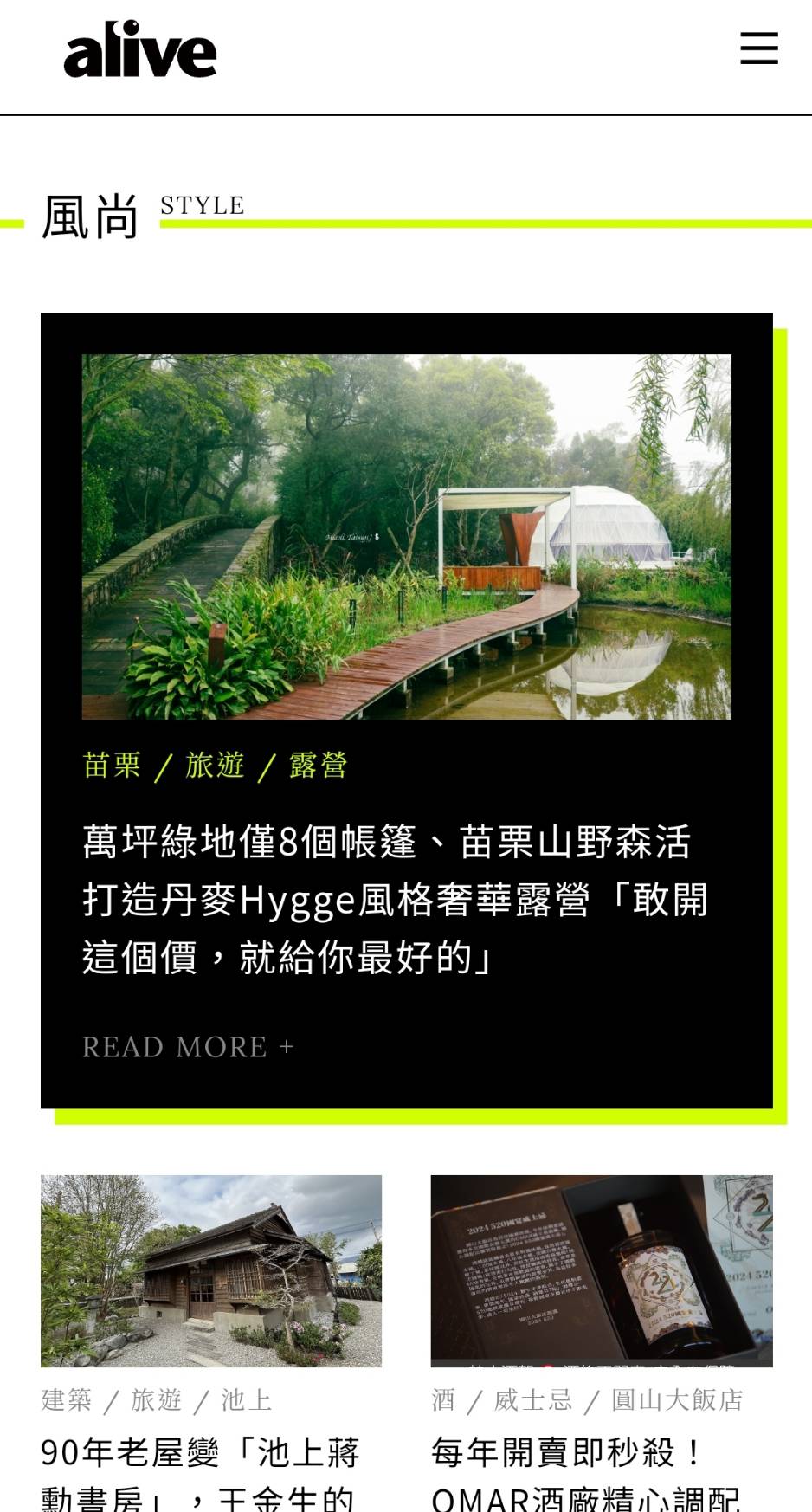 師法丹麥 Hygge 文化,又與日本最大豪華露營企劃公司「Glamping Japan」合作,深隱苗栗卓蘭的山野森活,是一具有國際視野的奢華露營,過去一年來,Porsche、Bentley、Land Rover 等高階車品牌都選擇在此舉辦車主活動,受高端市場肯定的程度可見一斑。話說奢華露營,我在海內外也體驗數次,不過在帳篷裡放座浴缸,我還是頭一次看到,Dyson 吹風機、Fellow 手沖壺,客房內的設備都是時下所能想到的攻頂選物,加上一泊四食與好酒暢飲,擺明了就是要客人來好好享樂,假日雙人約兩萬元的收費不亞於國內任何一家頂級飯店,但實際住下來,確實可感覺到有種 “我敢開這個價,我就捨得給你最好的” 之氣魄。