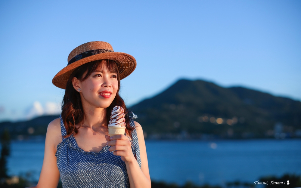 ⇑ 日落時分陽光柔和,在望高樓能以淡水河與觀音山做背景擺拍美照