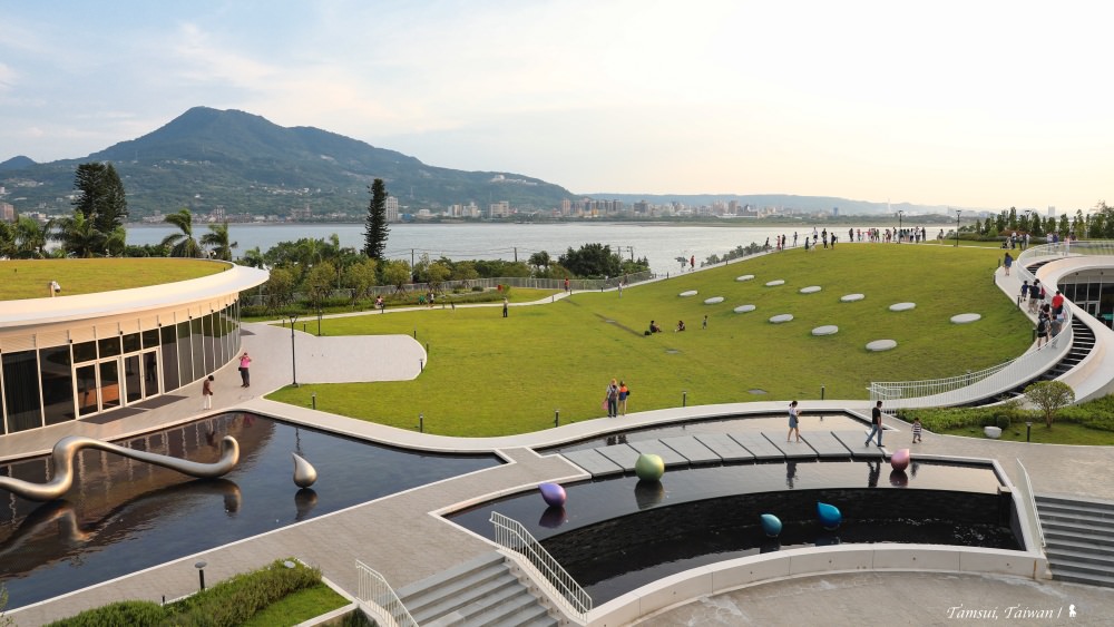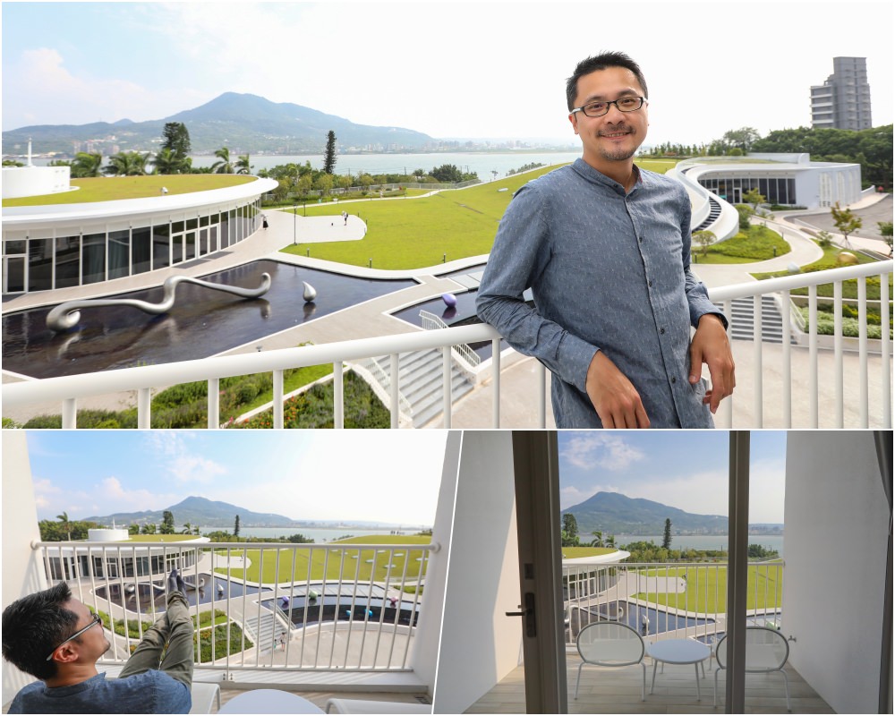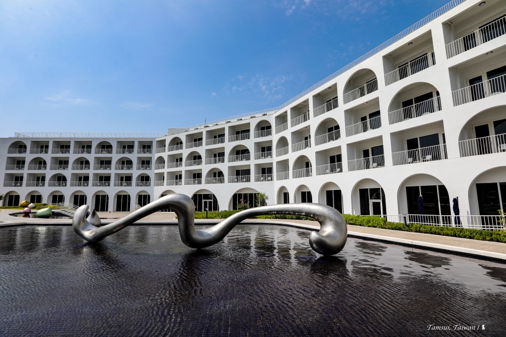 沒辜負這優美的山形水色,他們蓋出如詩般的酒店建築。以鄰近的滬尾砲台為設計靈感,酒店化身為白色簡單線條,成了一座黃金級綠建築,在大面的草地上優雅成形。有流水有綠地的戶外空間,請來藝術家蒲浩明創作了 16 顆水滴藝術,擬人的唱歌、舞動,彷彿是遊客來到此地會有的開心模樣。有意思的是,蒲浩明的外祖父可大有來頭,他是繪下多幅經典淡水風景的台灣第一代西畫家陳澄波,祖孫倆彷彿用藝術在淡水產生對話,很棒的相遇。