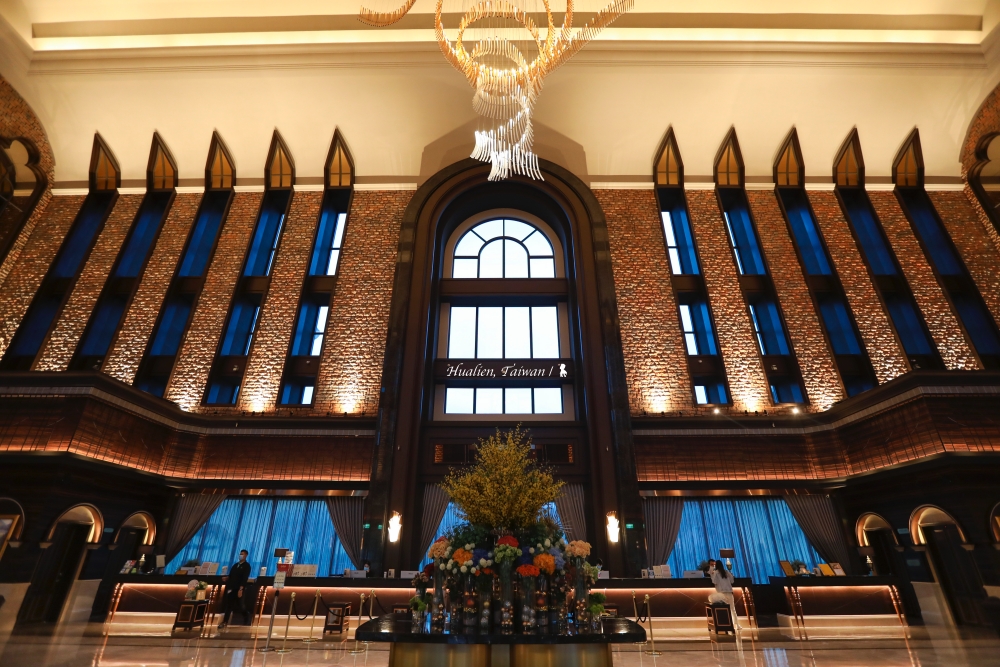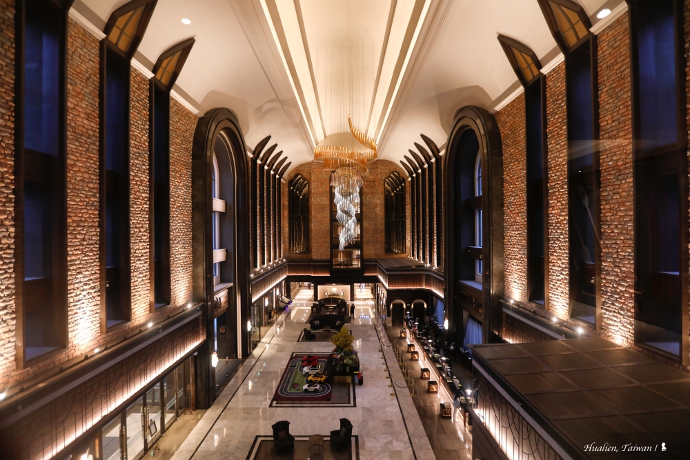 佔地 2 萬坪、投入 60 億並耗費 7 年打造的「瑞穗天合國際觀光酒店」,自 2019 年 3 月開幕後,隨即將台灣東部的旅宿產業帶向新高度,今年夏天更是榮獲交通部觀光局的「卓越五星」標章,全台唯二。投入的時間與金錢成本甚是可觀,一直想找機會來開箱,但老實說、我有一些擔心、不知道會否是自己喜歡的風格。但,當我一踏進挑高 27 米的全台最高飯店大廳,環繞仰望然後愣住的那一刻,就知道原本擔心是多餘了。強烈建議日落後,天色轉為藍調的暮光之時,站在大廳欣賞感受,當左右對稱的兩排窗引入微藍天光,與自捷克空運來台、取名「金色絲帶」LASVIT 水晶吊燈所營造的金黃氛圍相輝映,牆上紅磚的古樸粗獷對比一片片手工鑲嵌水晶燈所折射的光華,當下,帶來的感動,絕非是單靠那盞水晶燈背後斥資三千萬就能堆疊,讓我驚艷與讚嘆的,是整體設計的品味,那穹頂、那光影,可真像極了優美的歐洲教堂。