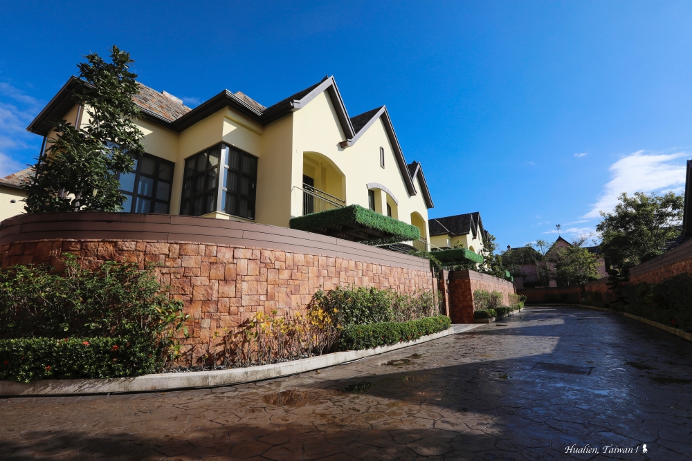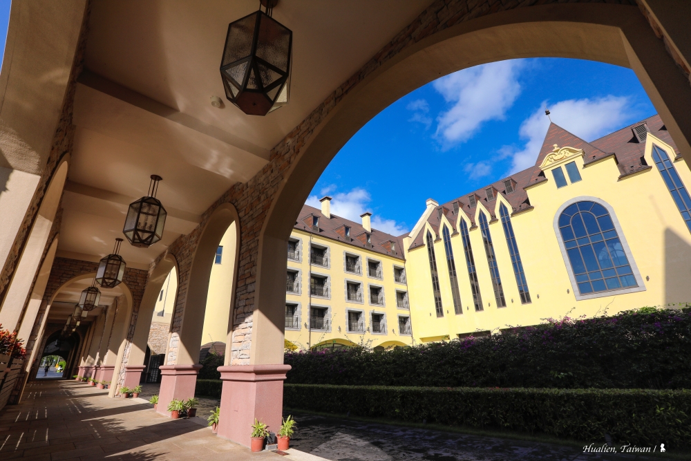 收起前一天整日的雨,隔天醒來,欣喜面山景的窗外放晴。趁早餐前,帶著相機散步一下因雨還沒好好欣賞的園區,花蓮空氣好、透度高,加上園區也美,走走拍拍,都很精彩,若不特別說,應就以為曬的是在歐洲拍攝的照片吧!這回只住一晚,還好多設施根本沒時間使用,建議若來玩,連住兩晚會比較充裕,也能悠閒享受一池泡過一池的黃金湯。