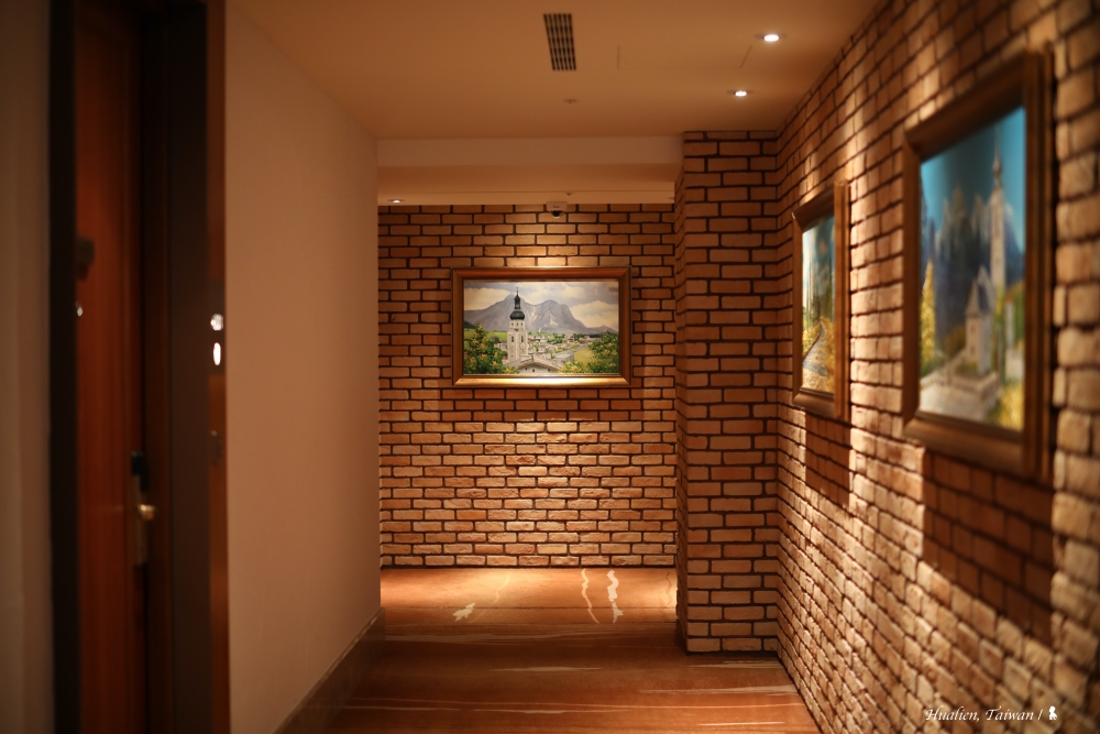 ⇑ 客房外的走廊,牆上畫作多以歐洲風景為主題