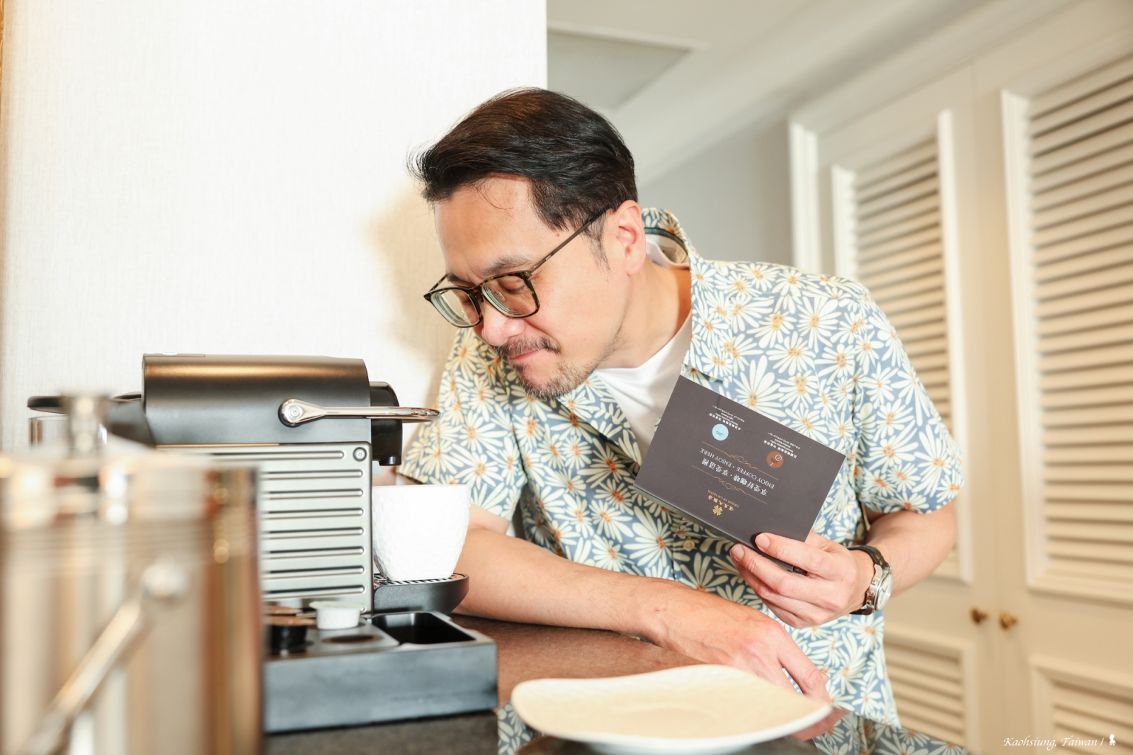 16 坪大的空間相當寬敞,風格也清爽而明亮,提供的咖啡膠囊機還附了少見的淺焙咖啡膠囊,帶著咖啡來到靠窗的沙發區,搭配品嚐迎賓的圓形鳳梨酥。環顧四周,發現這幾十年過去,除了客房風格大變身、床頭還與時俱進擺放了智能管家小美犀,向下俯瞰,更明顯的是窗外景觀不僅大升級也是相當國際級,西班牙建築師 Manuel Alvarez Monteserin Lahoz 以海洋元素設計的高雄流行音樂中心,讓港口更加立體,而一旁還有像是鯨魚棲息的是高雄港旅運中心,這些別具特色的建築是日夜皆美,尤其是高雄流行音樂中心到了晚上照明設計甚佳,有著自帶律動感的時尚。夜裏不妨散步到附近夜市,輕鬆買個幾樣小點,回到房間從冰箱拿個飲料坐在窗邊吃吃喝喝,就是一段愜意悠閒的度假時光。若也喜歡這樣輕鬆的城市假期,不妨把握飯店持續推出的高鐵聯票專案,若能把握三月底前入住,不僅提供豐盛的自助式早餐、平日有機會升等港景客房、還可使用左營高鐵站到飯店的定點接駁車,加購高鐵票可享七折(起)的優惠,若是趕不及三月底,飯店也持續有提供搭配優惠。