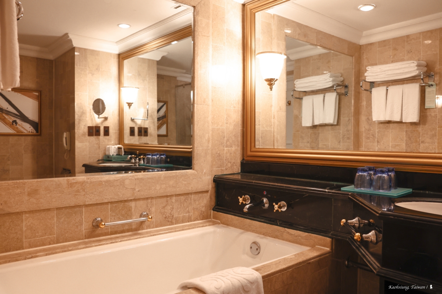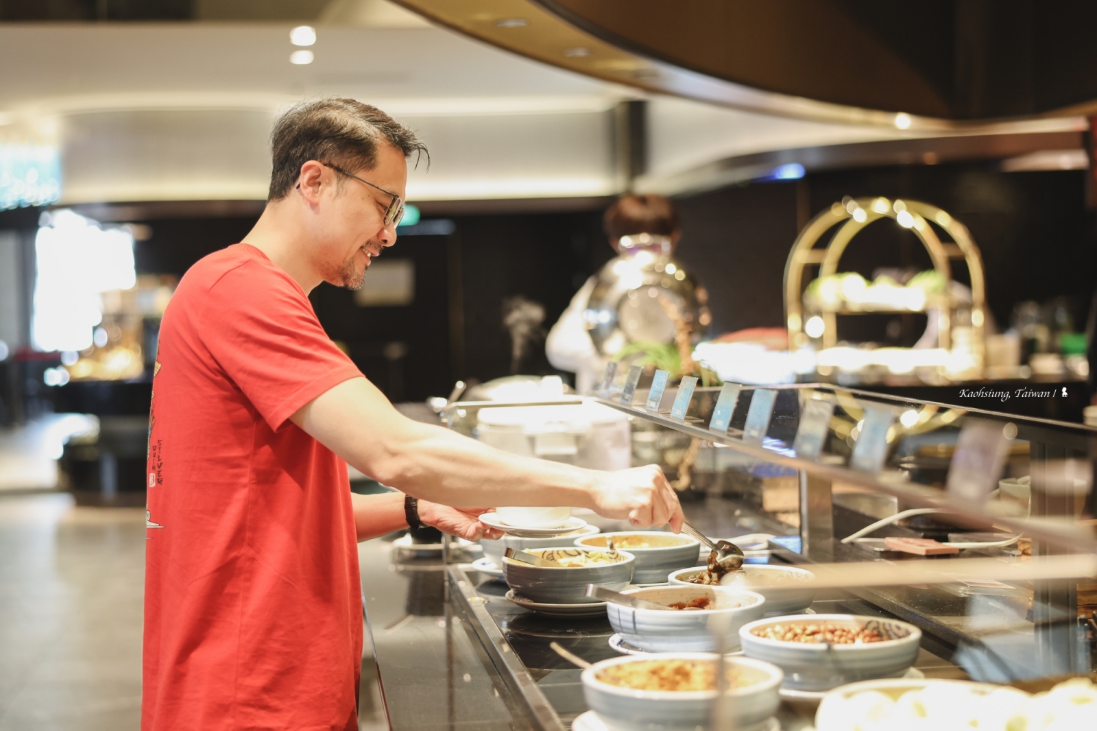 為了體驗改裝的客房,我專程南下,從左營高鐵站搭上飯店接駁車,途經開闊的高雄中央公園與幾處人氣購物中心,當車子一停穩,飯店人員馬上主動向前下行李,嫻熟也親切,後來我才知道,目前全台飯店有 22 位金鑰匙成員,漢來飯店事業群就擁有 4 位金鑰匙禮賓大使。下了車、當從華麗帶有懷舊氛圍的旋轉門步入大廳,我馬上就被接待的飯店人員詢問「有來住過高雄漢來嗎?」我回答「有,廿幾年前!」,微笑同時也瞬間回憶湧現,還記得首回入住,那是本世紀初的一次過年,找了兄嫂兩家作伙一起南下來玩。當時侄子侄女都還在爭相討阿叔我抱,如今,一個已在工作、一個快大學畢業了,時間過得好快,而這飯店大廳仍是我記憶中的古典雅緻。