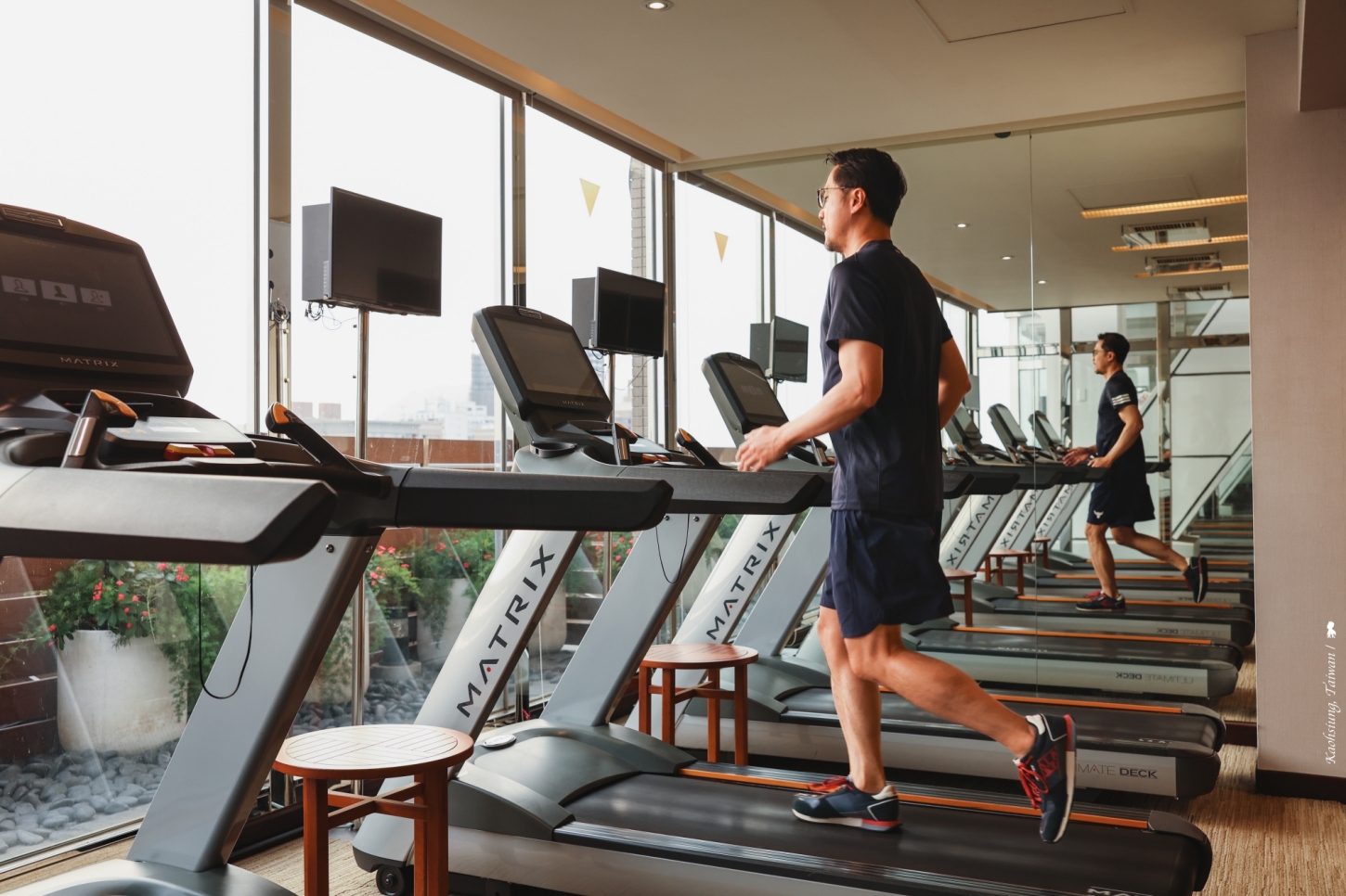 上述高鐵聯票專案還有一個禮遇是可免費使用三溫暖、健身房及露天游泳池,這個部分我覺得蠻值得,這些休閒設施是位於 11 樓的《勁-漢來國際俱樂部》,三溫暖是重新裝修、改裝的相當不錯,兩池熱水與兩池冷水,冷熱交替再去到位的烤箱與蒸氣室,一整趟下來非常舒服。此外若有健身習慣,重訓設備不算多但也一應俱全,主要偏重在有氧的器材,甚至還有一小間飛輪教室,頗具規模。此外室外泳池,風格迥異於台北漢來的城市科幻無邊際泳池,高雄漢來是帶點貴氣的宮廷風,值得將泳裝與泳帽打包進行李箱來悠游一下。