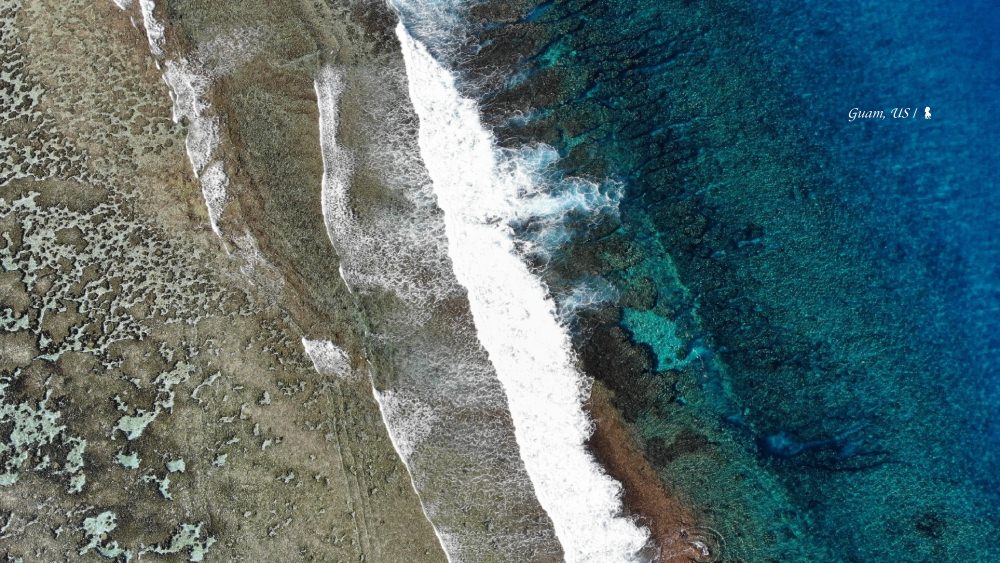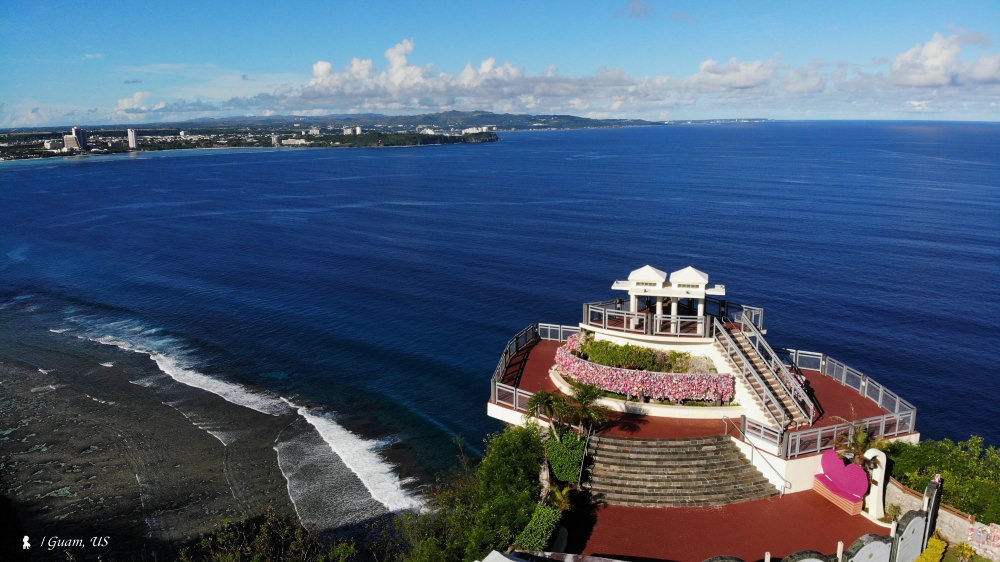 ⇑ 空拍關島最具標誌性的景點:戀人岬,擁抱 270 度的菲律賓海,壯闊而迷人