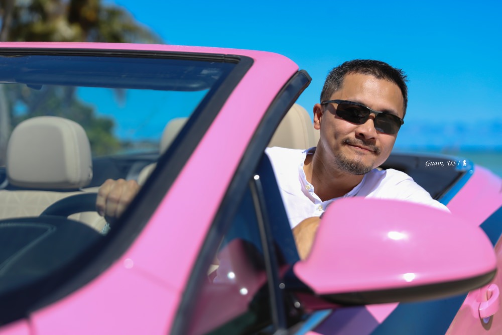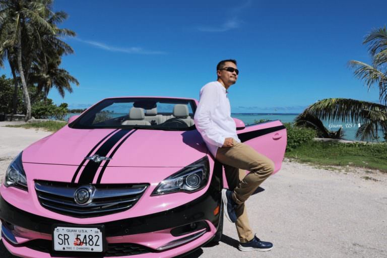⇑ 若要開這台關島唯一粉紅色迷你敞篷車,得搶訂,可找 QQ Rent A CAR 或找犇關島旅遊可享獨家折扣