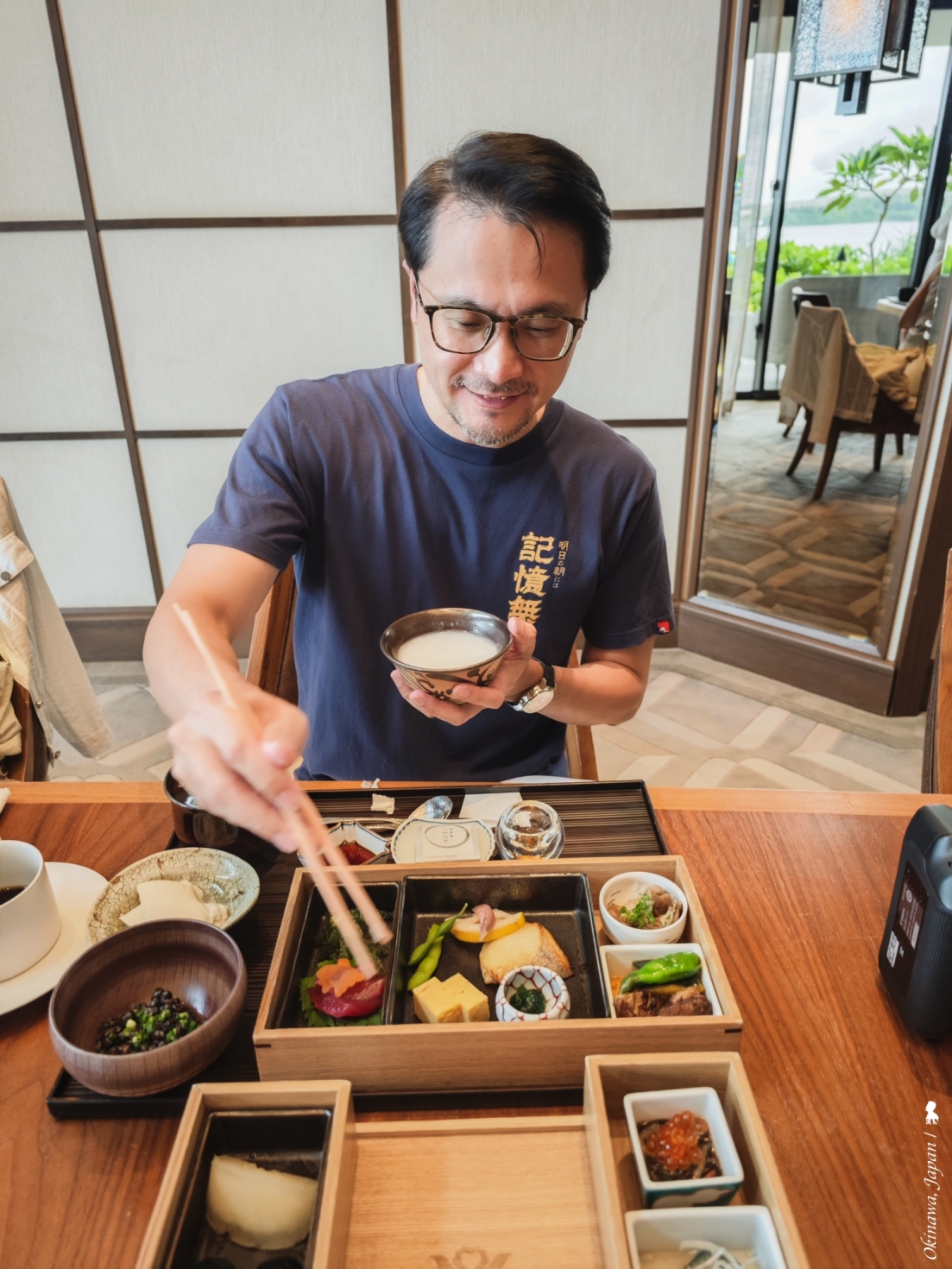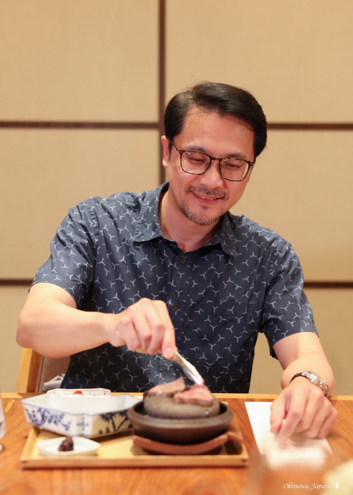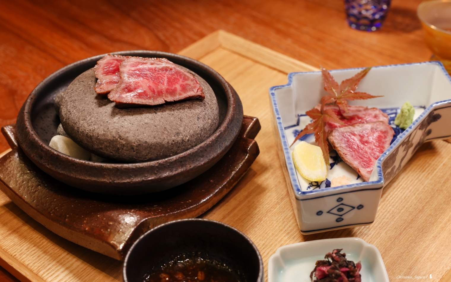 即便位於日本南部海島,仍可品嚐到包括來自日本本島的上乘食材。這晚,品嚐的是一套日幣 18,000(折合台幣約 3,876 元)的懷石料理,從器皿到食材都很精緻講究的山珍海味,具沖繩特色的海葡萄與山苦瓜沒缺席,不過很棒的是這套料理沒受地域限制而被框架住美味,黑毛和牛、伴隨紫蘇花提味的鯛魚生魚片、立鱗燒還有鴨肉麻糬糰子。