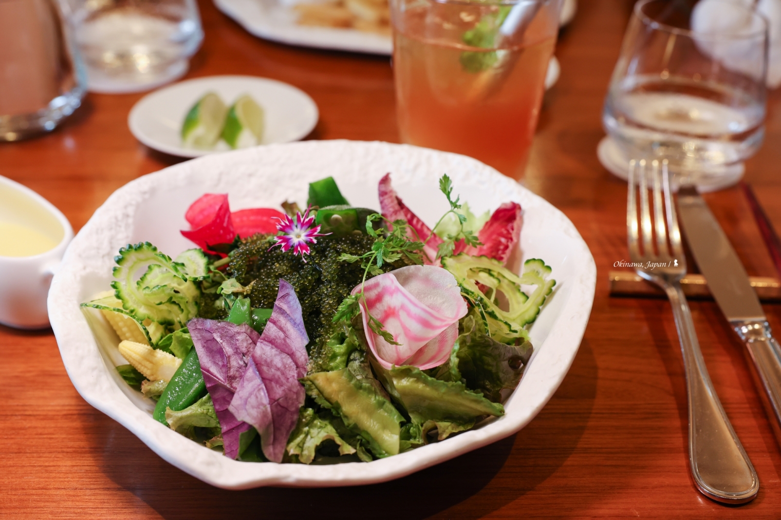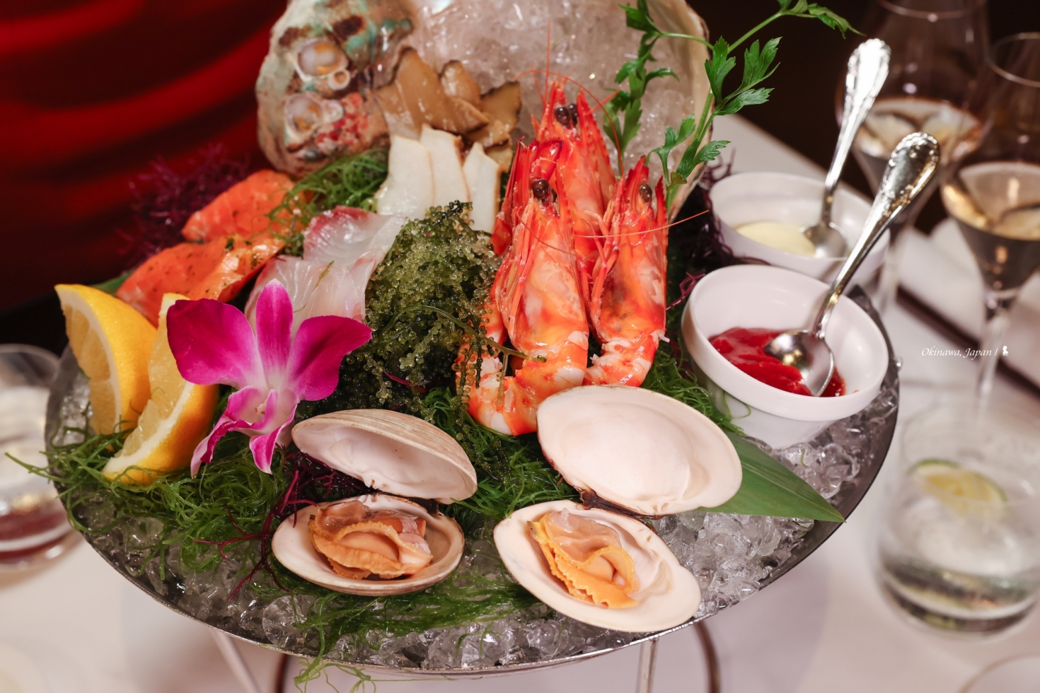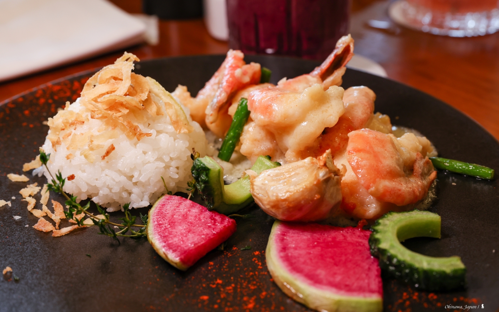 即便位於日本南部海島,仍可品嚐到包括來自日本本島的上乘食材。這晚,品嚐的是一套日幣 18,000(折合台幣約 3,876 元)的懷石料理,從器皿到食材都很精緻講究的山珍海味,具沖繩特色的海葡萄與山苦瓜沒缺席,不過很棒的是這套料理沒受地域限制而被框架住美味,黑毛和牛、伴隨紫蘇花提味的鯛魚生魚片、立鱗燒還有鴨肉麻糬糰子。