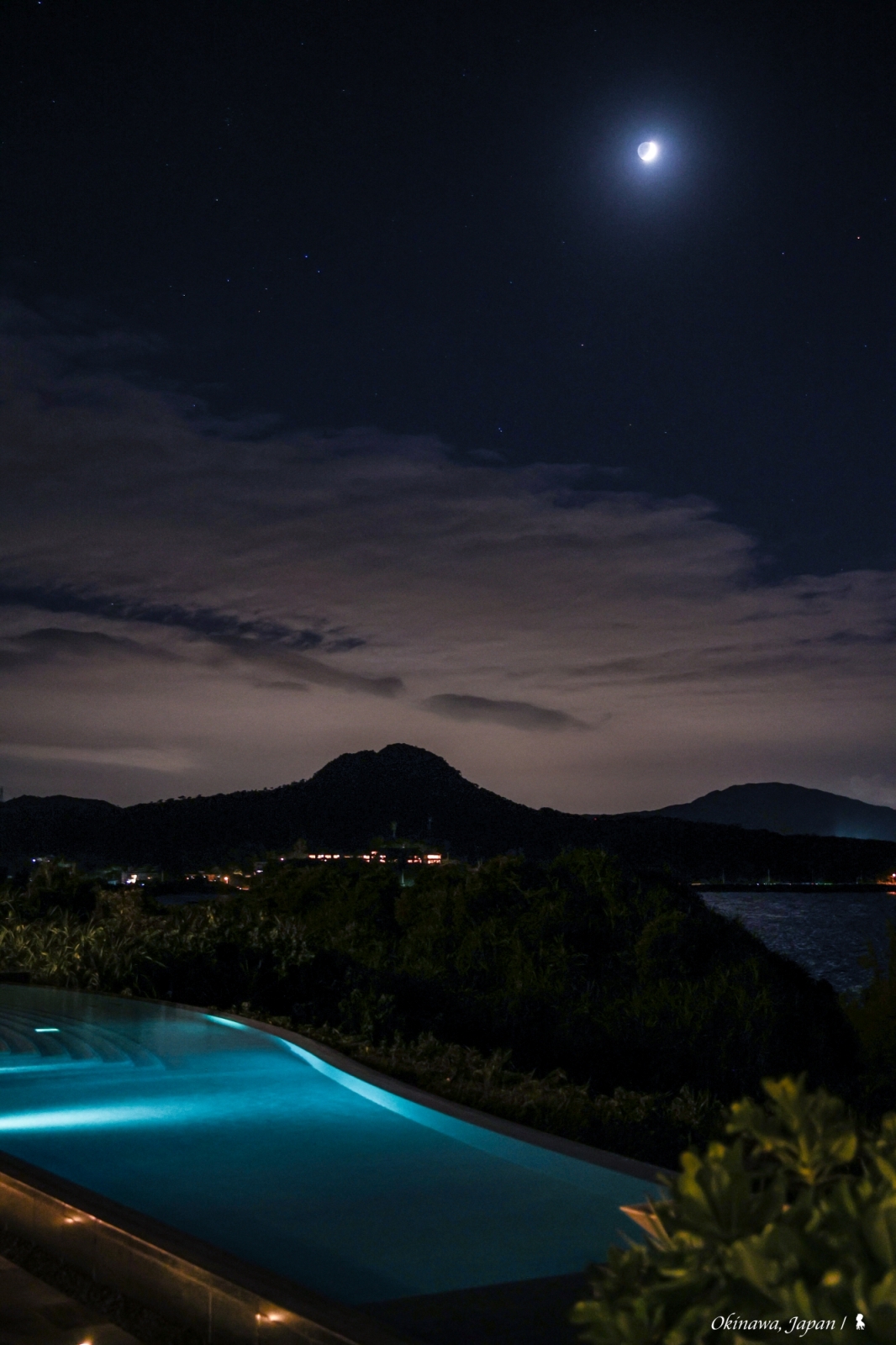 ⇑ 酒吧外有座無邊際泳池,正好欣賞到月光灑落海洋的美景