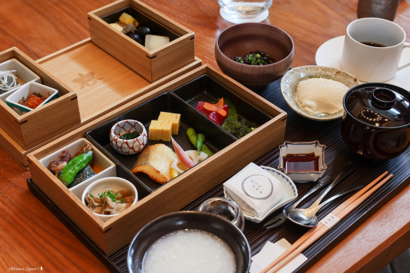 除在「House Without A Key」,也可選擇到「SHIROUX 白色創意餐廳」吃早餐,這回其中有兩天我就在此品嚐了日式與西式兩種。餐廳名字「SHIROUX」在沖繩語中是白色的意思,聘請東京米其林二星餐廳主廚擔任顧問主廚。若有機會來住而只能在 SHIROUX 吃一天早餐的話,那我會優先推薦日式,不只賞心悅目,仔細一嚐,每個小缽、每項食材,都是精挑細選,像是手作豆腐、生魚片佐沖繩海葡萄、紀州南高梅,還有海草色的岩布海苔更是新鮮味美,搭配我點的清粥,可以感受何謂 “簡單,就很迷人“…