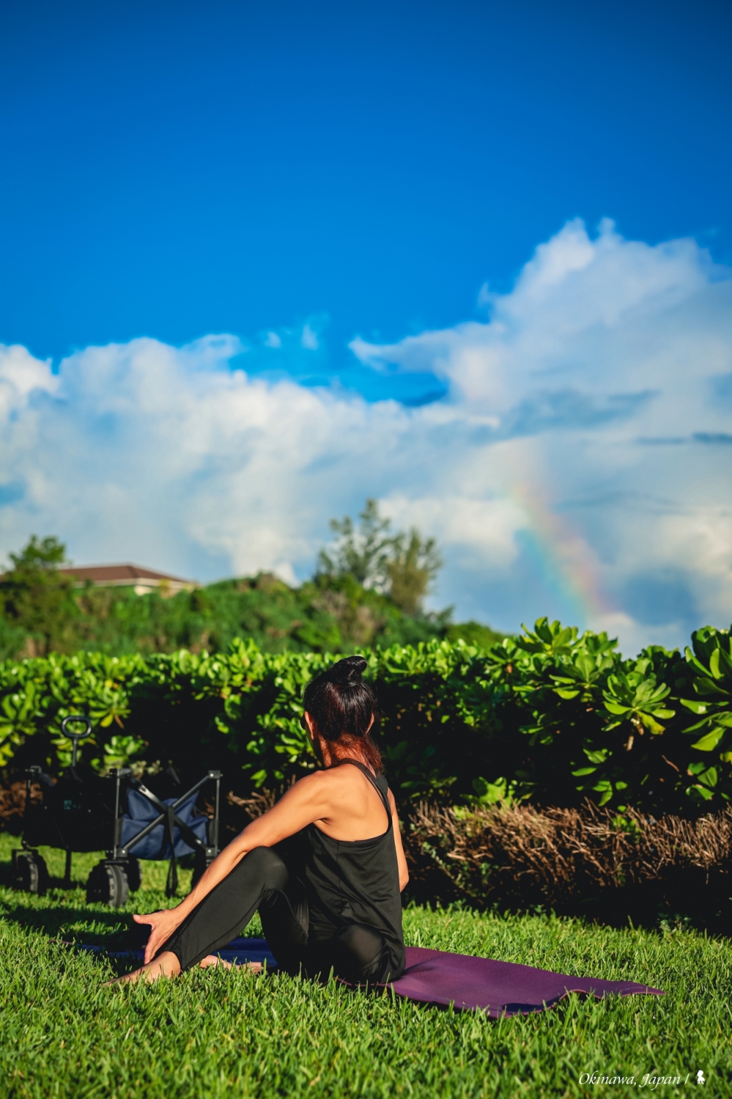 ⇑ 欣喜看到一道彩虹從瑜伽老師身後升起