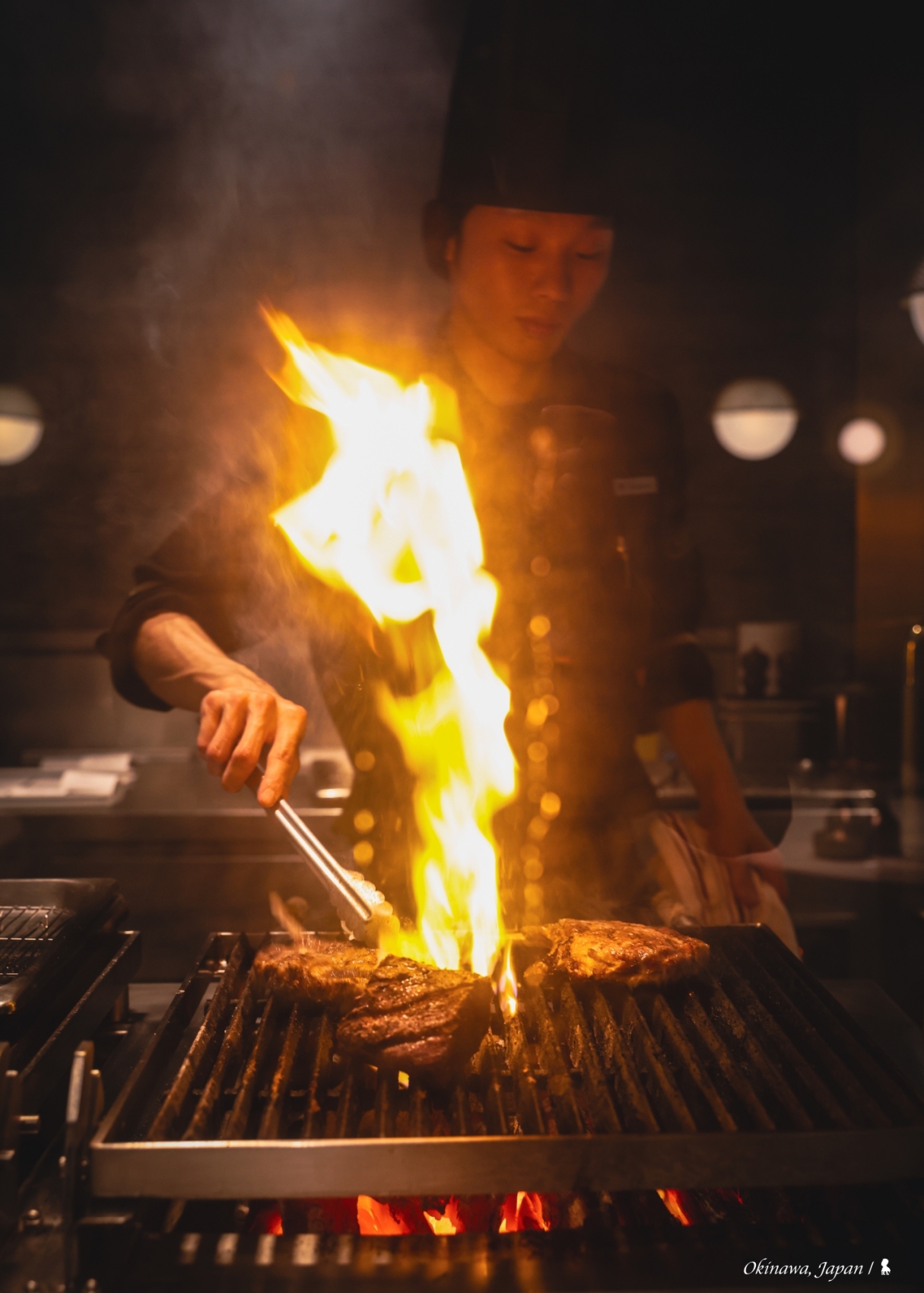 ⇑ 直火現烤考驗廚師功力