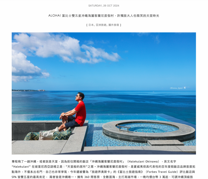 飯店詳細開箱請見另一篇文章「ALOHA! 富比士雙五星沖繩海麗客蘭尼度假村,許獨旅大人也微笑的天堂時光」