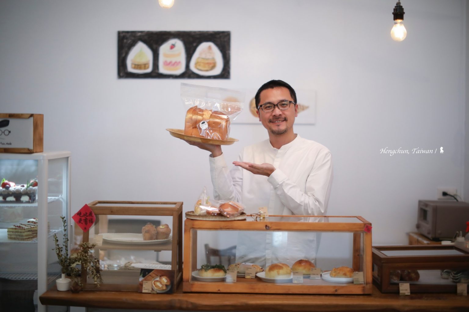 男主人 Man 是香港人,來台灣學烘焙,與課堂上來自台中的助教曉萱邂逅,後來選擇在台灣的最南端落腳。男主人專做麵包,女主人負責甜點,有時分開創作、一些產品又要相互合作。食物本來就是很主觀的,同行朋友與我開玩笑問說那一塊創作時會不會吵架呀?兩人沒料到會問到這題,靦腆的笑了起來。