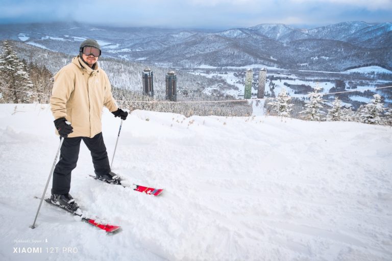 滑雪屬極限運動,自然不適合揹大相機,所以這趟滑雪影像紀錄就完全仰賴輕放外套拉鍊口袋裡的 Xiaomi 12T Pro 手機,即使處在低溫環境,但使用起來完全沒問題,也不會因急凍而有電力縮減的窘況,讓我能夠輕鬆自拍或者從高處俯拍眼下的夢幻銀白世界。印象很深刻是當我站在雪道制高點時,有位身穿全黑的滑雪高手忽然竄進我的拍攝畫面中,隨即就自動被黃框框鎖定住,對、那是手機內建的 Profocus 運動追焦功能,確實厲害。