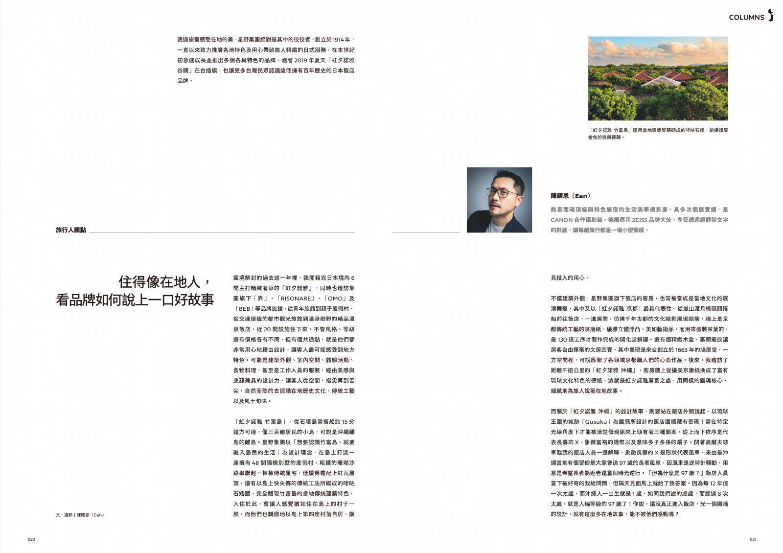 國境解封的過去這一年裡,我開箱完日本境內 6 間主打精緻奢華的「虹夕諾雅」,同時也造訪集團旗下「 界 」、「RISONARE」、「OMO」及「BEB」等品牌旅館,從青年旅館到親子度假村、從交通便捷的都市觀光旅館到隱身鄉野的精品溫泉飯店,近 20 間設施住下來,不管風格、等級還有價格各有不同,但有個共通點,就是他們都非常用心地藉由設計,讓客人盡可能感受到地方特色。可能是建築外觀、室內空間、體驗活動、食物料理,甚至是工作人員的服裝,經由美感與底蘊兼具的設計力,讓客人從空間、指尖再到舌尖,自然而然的去認識在地歷史文化、傳統工藝以及風土旬味。