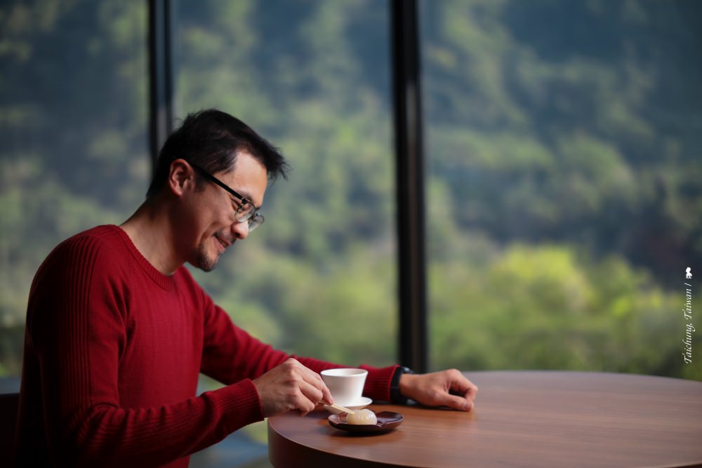 承襲日本的細緻服務,虹夕諾雅 谷關的 check in 手續,不在大廳,在房間。雖初抵的圖書閱覽室,可能已在那喝過咖啡茶,但其實真正提供迎賓茶點,是在自己房間。當我走進入住的 「月見」房型,一進房,看到大片落地窗的綠意滿眼,在我「哇」聲未墜,服務人員已著手準備。只見他熟練打開櫃子,從冰箱端出預先準備好的點心,再從保溫瓶倒出茶,用的食器都講究,光看都享受。百香果口味的水饅頭,Q彈口感,切開後送入口,酸甜果香滿溢,搭配玄米茶,蠻好。