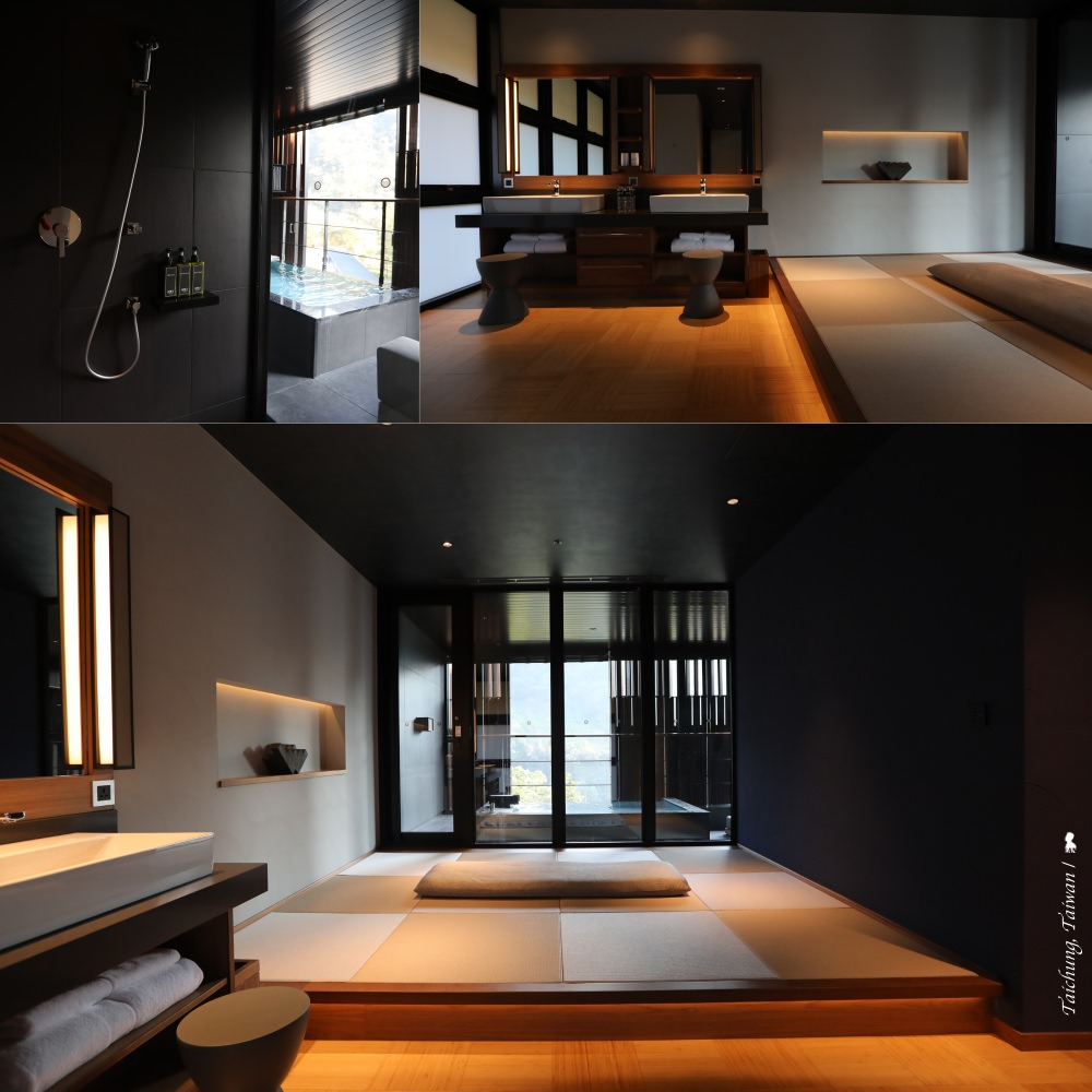 標榜房間提供大溫泉浴池的飯店不少,但都有個問題,水要放很久。虹夕諾雅 谷關因有著豐富的地湧泉量,24 小時源源不絕的原湯供應,因此全客房皆是天然無循環溫泉,隨時要泡,浴池水都是滿的,大自然的恩賜,最是奢華。谷關溫泉是被譽為「美肌之湯」的碳酸氫鹽泉,泡在裡頭會看到漂浮物,並非雜質,而是珍貴的溫泉花,這麼棒的泉質,難怪星野集團願意點頭,讓台灣繼 Bali 之後成為第二個海外虹夕諾雅據點。