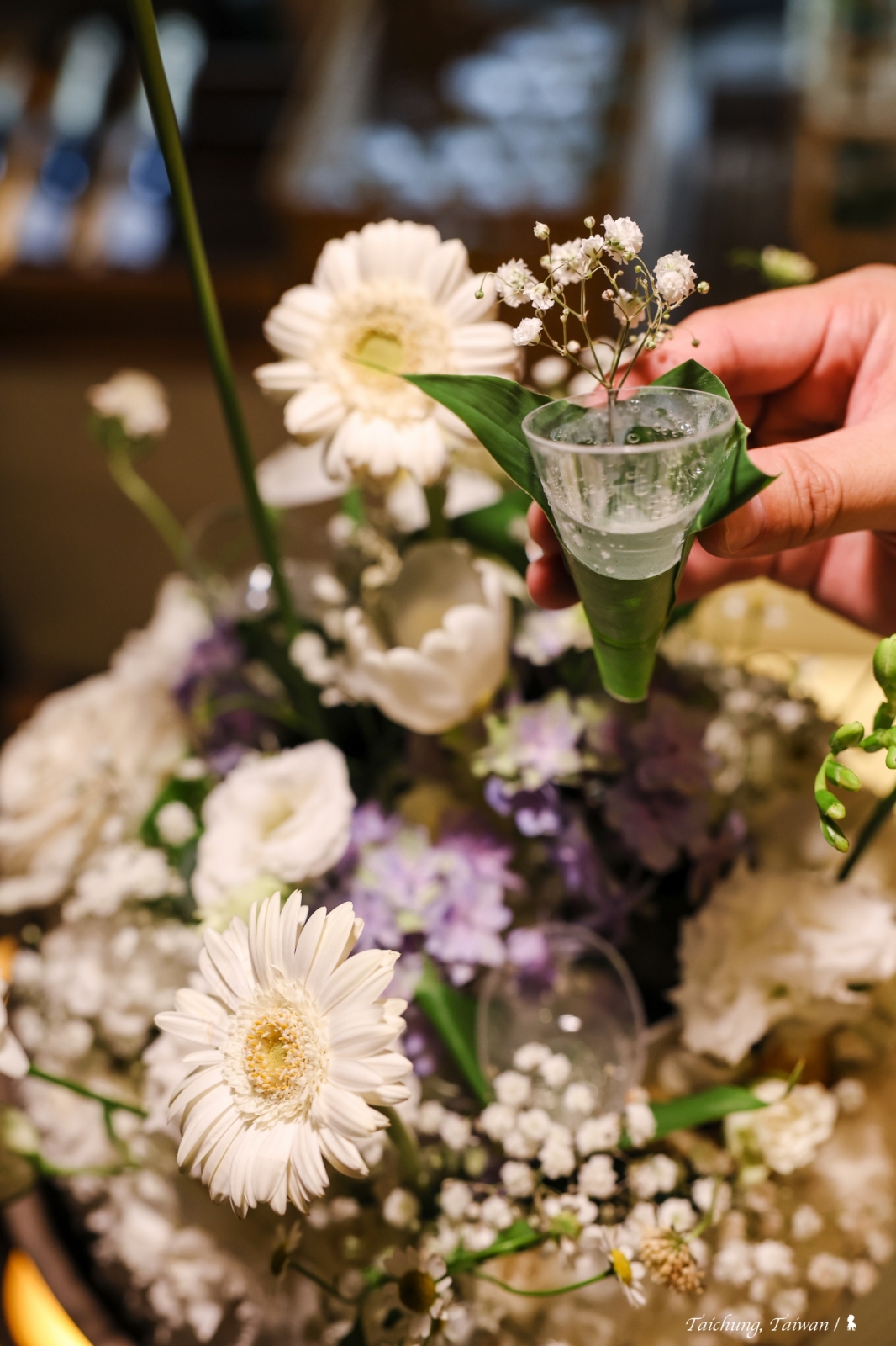 ⇑ 餐前飲品被藏於新鮮花卉中,增添找尋的樂趣