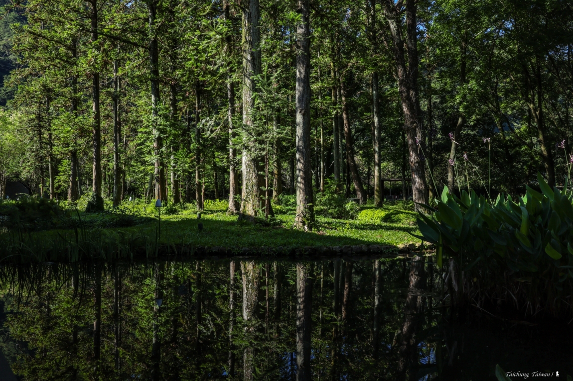 ⇑ 清晨的水之庭園,陽光點亮了整座林子