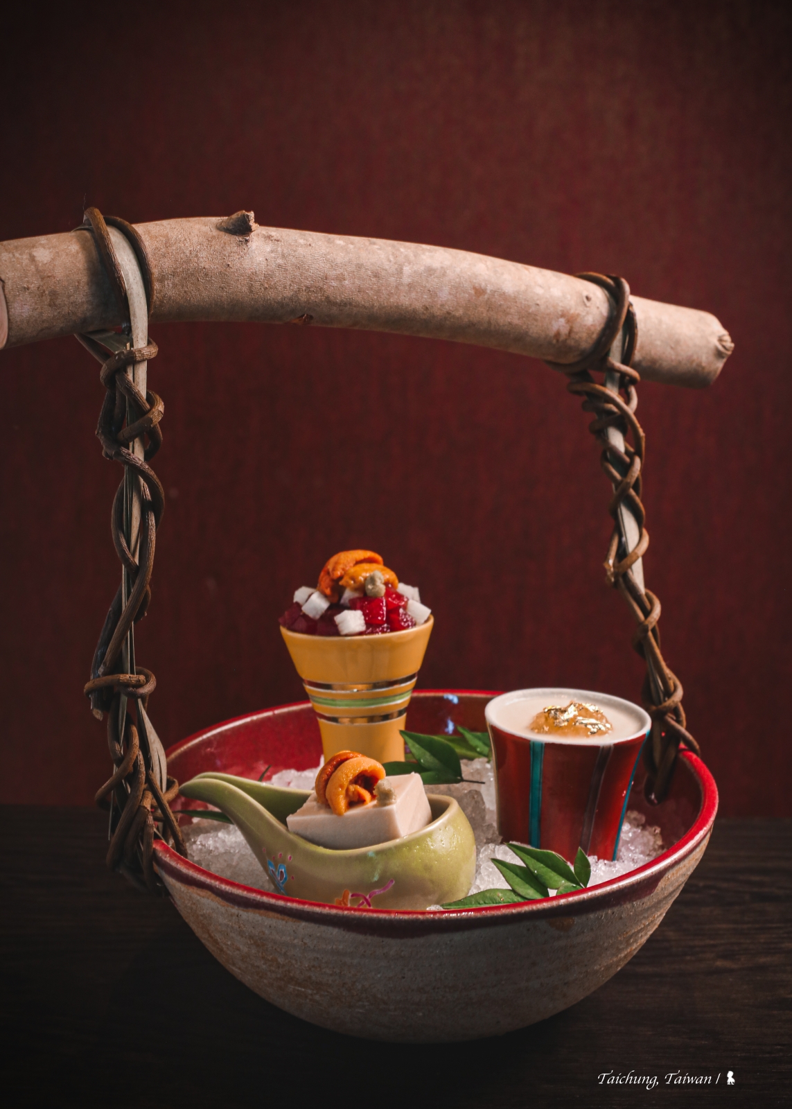 再訪虹夕諾雅 谷關時值五月初,幸運品嚐到甫推出的春夏會席料理,這也是料理長在星野集團首次參與設計的菜單。以「旅行是魔法」為主軸,加川 仁希望在國境尚未開放之際,客人能藉由這套饗宴在舌尖上來趟旅行。「出逢 / 溫暖 / 波光 / 薰風 / 越境 / 殘響 / 歡喜 / 靜寂 / 名殘」,每道料理名稱都是旅行中的過程,若串連起來,會發現意境美得像首詩。「出逢」是旅人初抵新環境的歡欣與期待,「波光」與「越境」則象徵旅途中遇到的美景與非日常的氛圍。接著,「歡喜」與「靜寂」是旅人享受的自在美好,最後甜點「名殘」,則是尾聲時邊回憶邊盼望著下次旅行。當我欣賞著端上桌如藝術品般的菜餚,聽著服務人員的娓娓介紹,兩年多沒出國長途旅行了,這時還真是懷念旅行當下的那份怦然與心境啊!