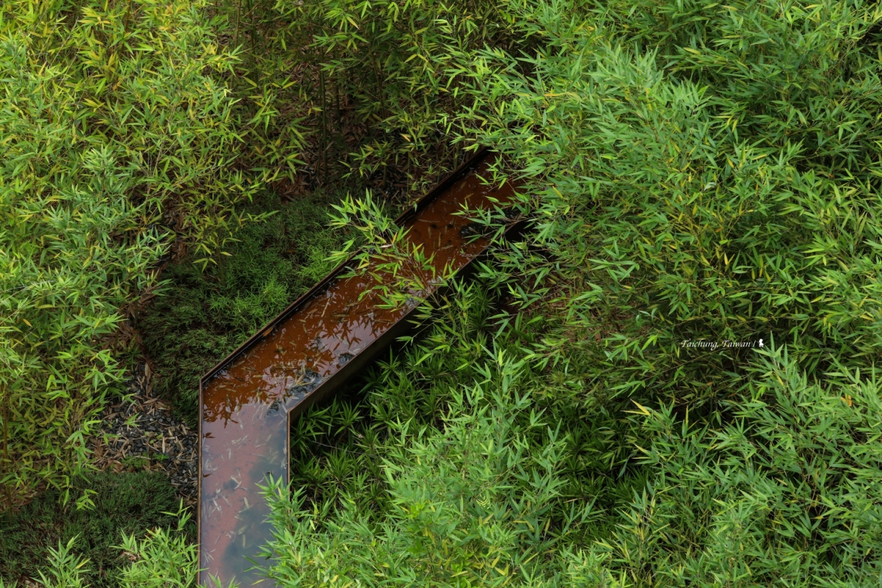 ⇑ 穿梭蒼翠竹林的鐵鏽水道,表現侘寂