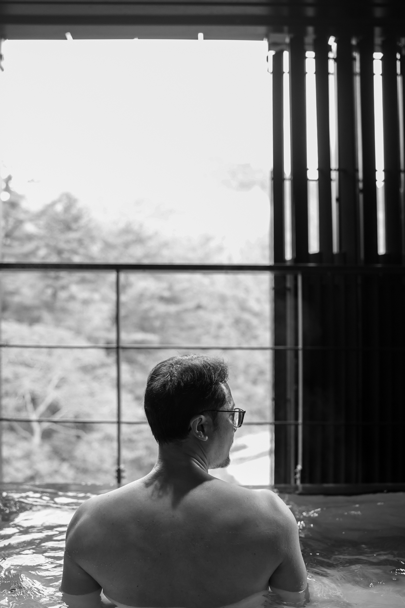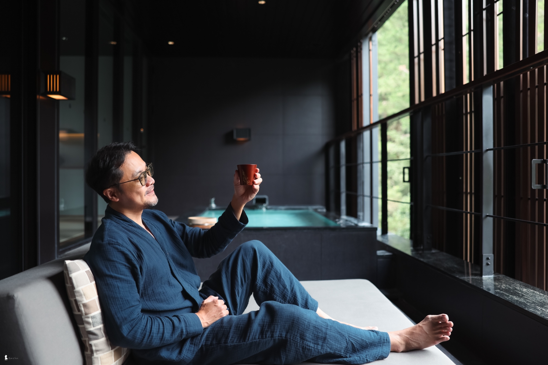 隔日清晨,無需鬧鐘。在「月見」房型那兩倍大的專屬溫泉區,我讓身體浸潤在 24 小時不循環的純淨湯泉中,看著純粹山景,這是屬於谷關的奢侈。