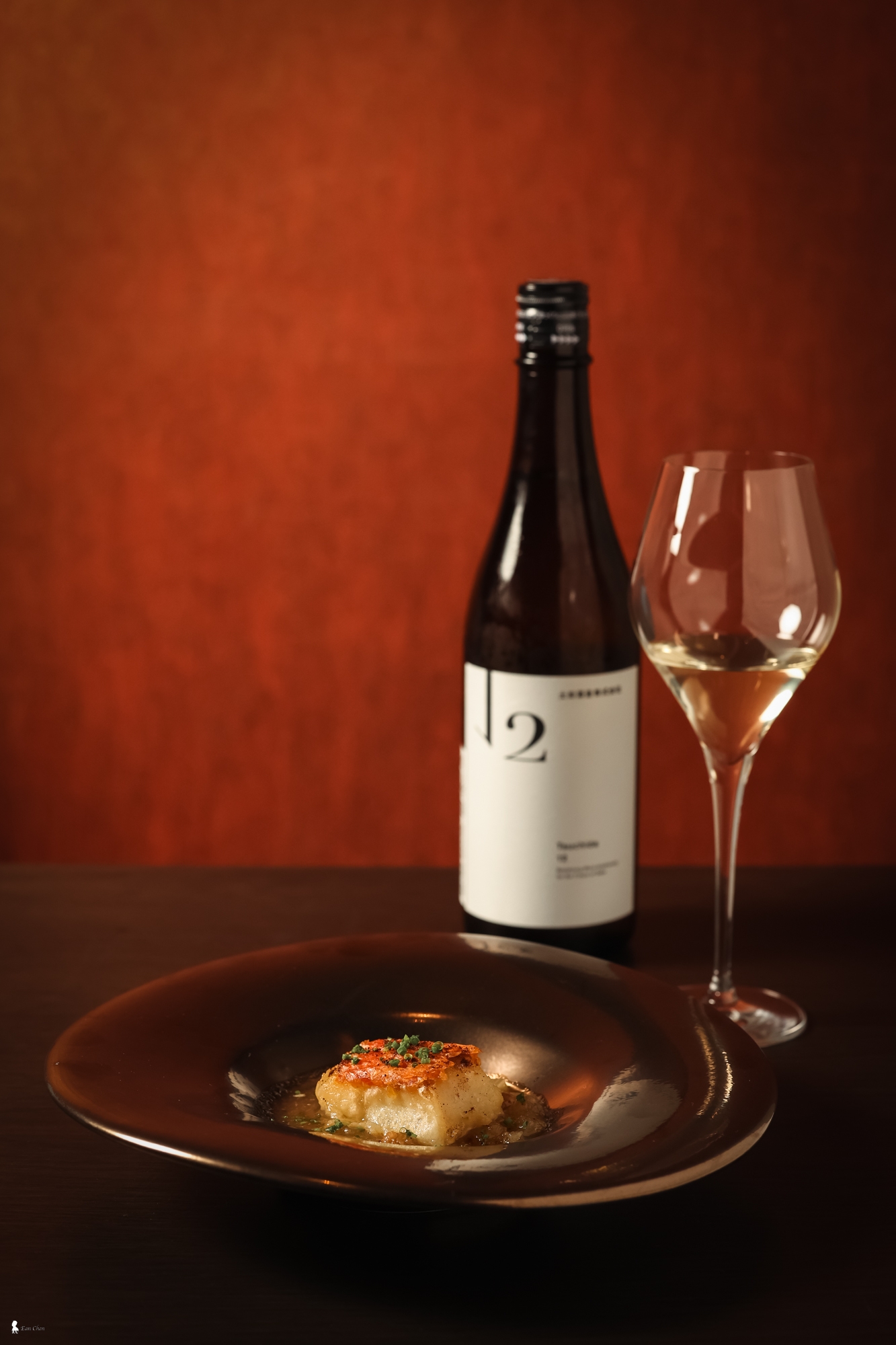 ⇑ 中段搭配的是「土田12」,這款酒精度僅 12% 的清酒口感輕盈,帶有葡萄香氣,恰如其分地襯托這道魚料理而不搶戲