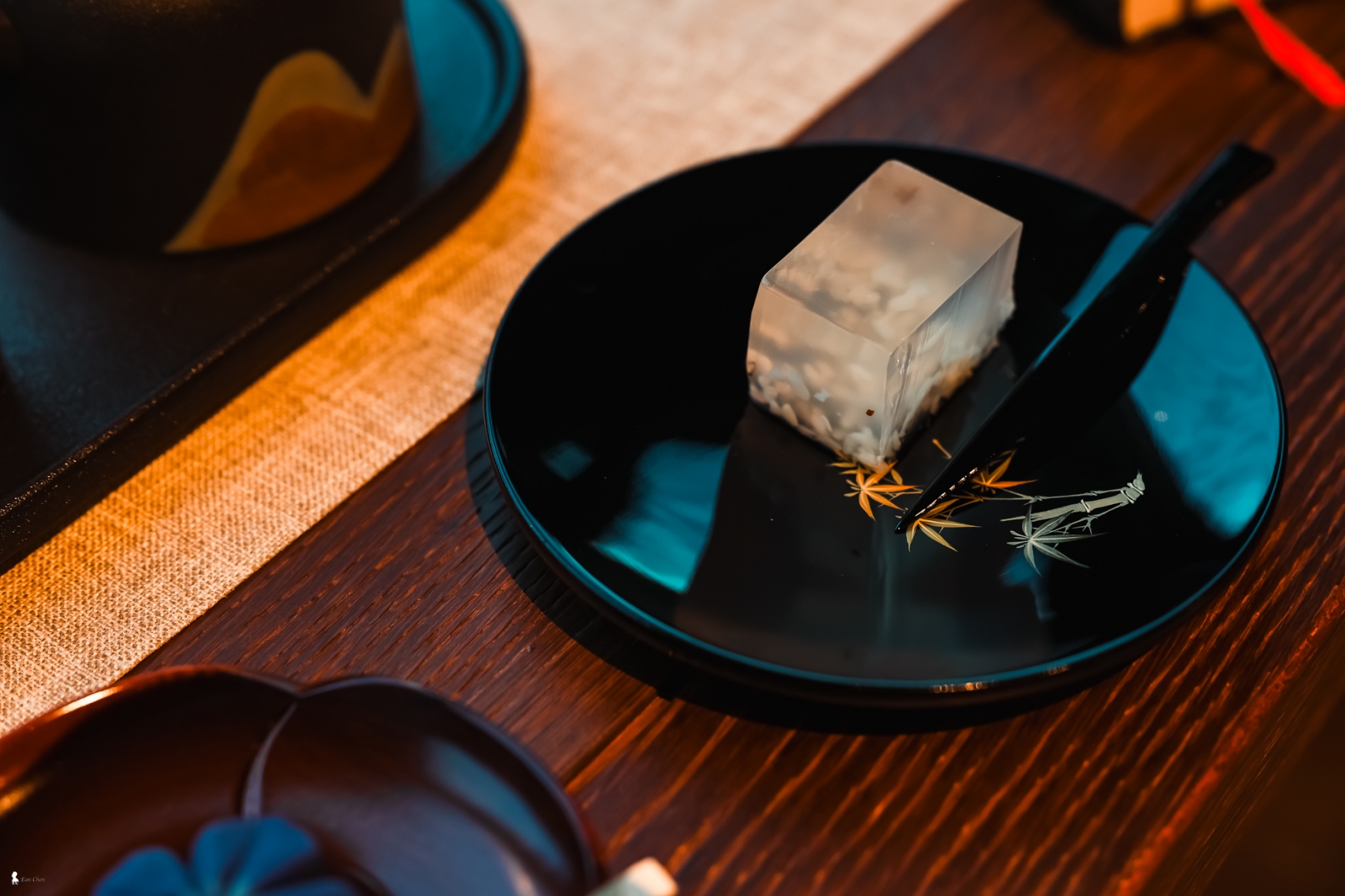 ⇑ 沈穩內斂的黑色漆面,與晶瑩剔透的和菓子形成絕美對比