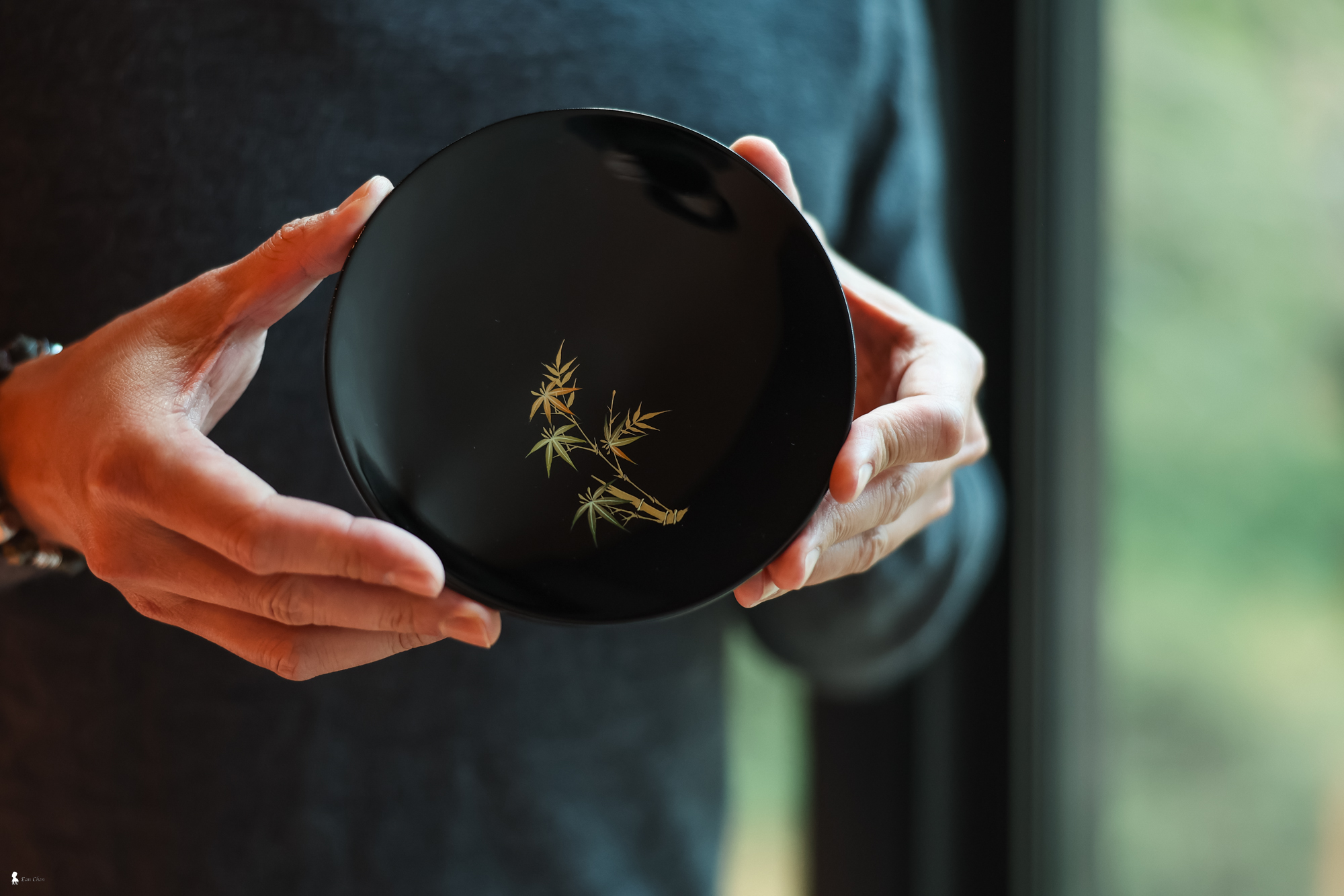 ⇑ 親手捧起漆藝師吳樹發的蒔繪漆盤,感受那份用時間堆疊出的質感