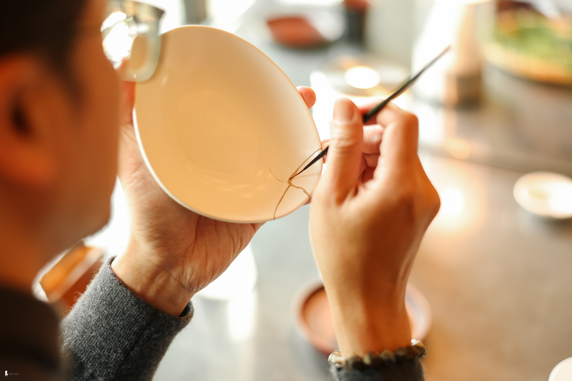 ⇑ 專注於指尖的修復,是找回內心平靜的儀式。在金繼的過程中,享受全心投入當下,讓心靈獲得療癒